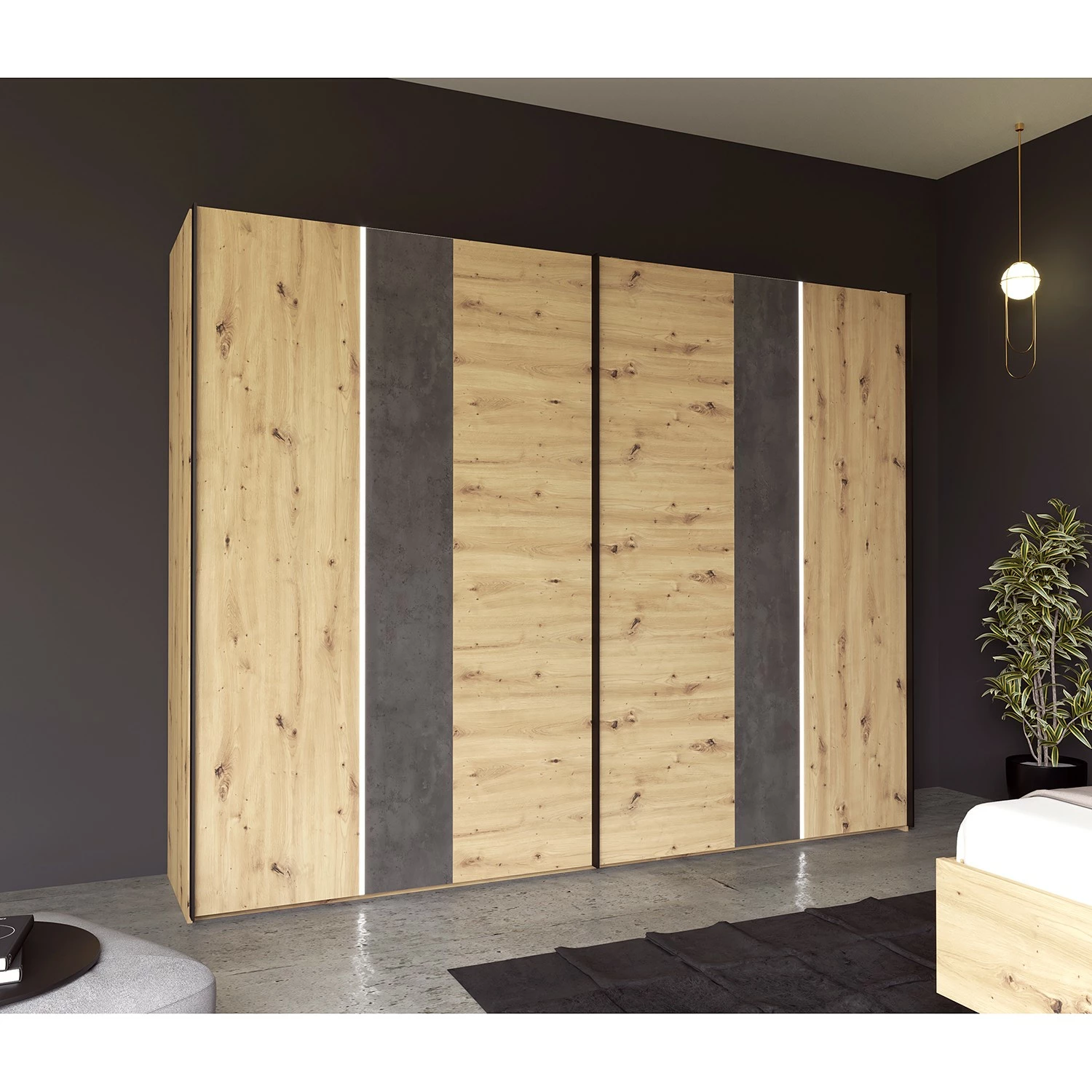 - Lieferumfang: Schwebetürenschrank inkl. Beleuchtung
