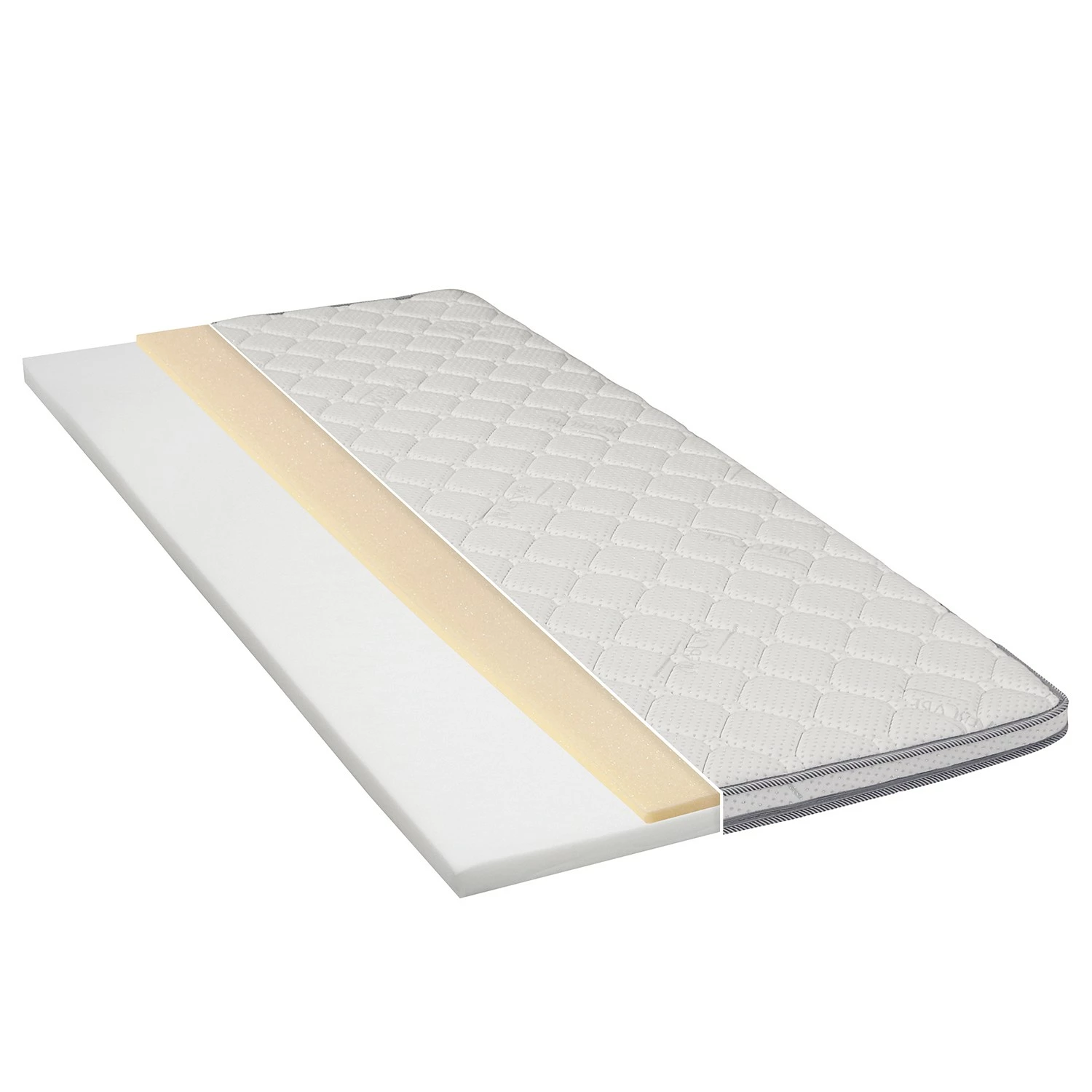 - Weitere Qualitätsmerkmale: 4cm PU weiss/2cm Visko im Bezug eingesteppt