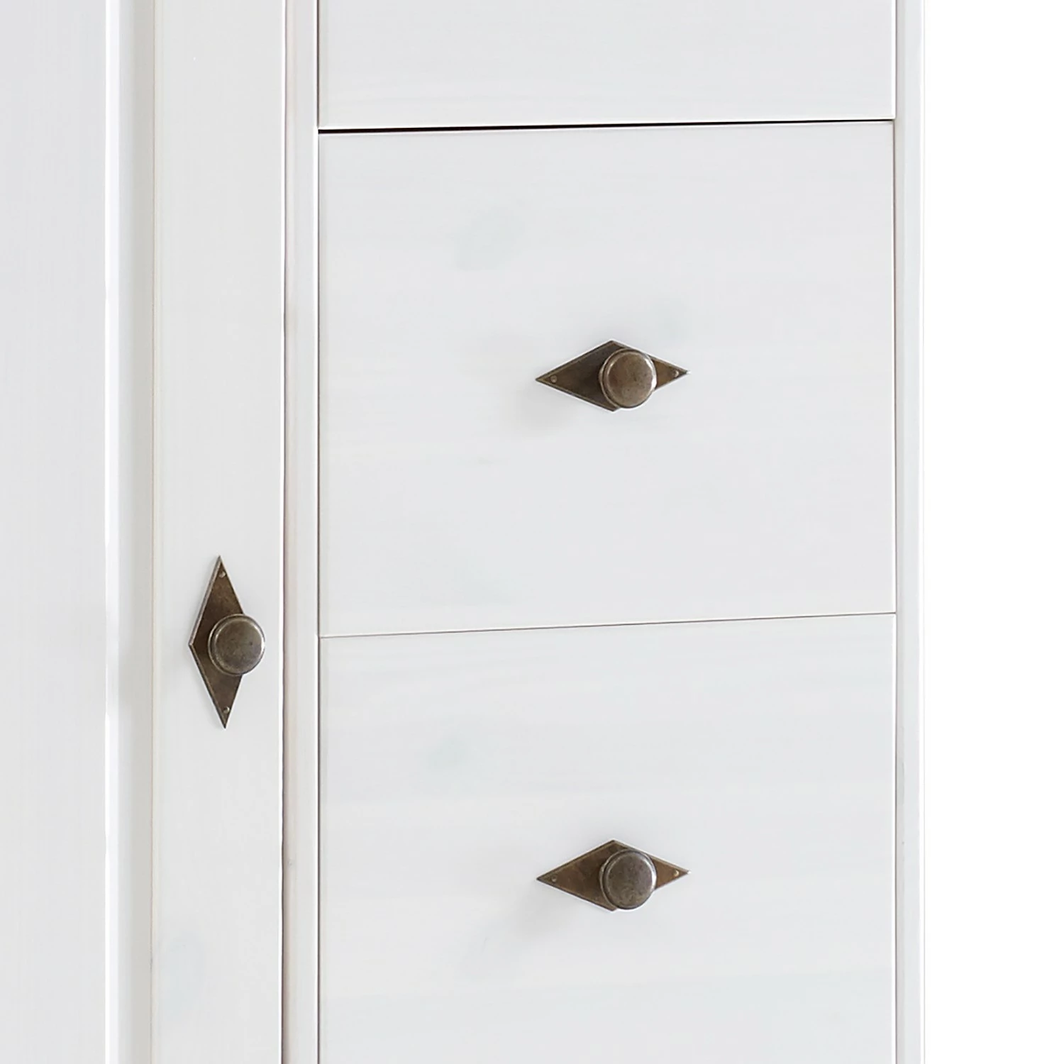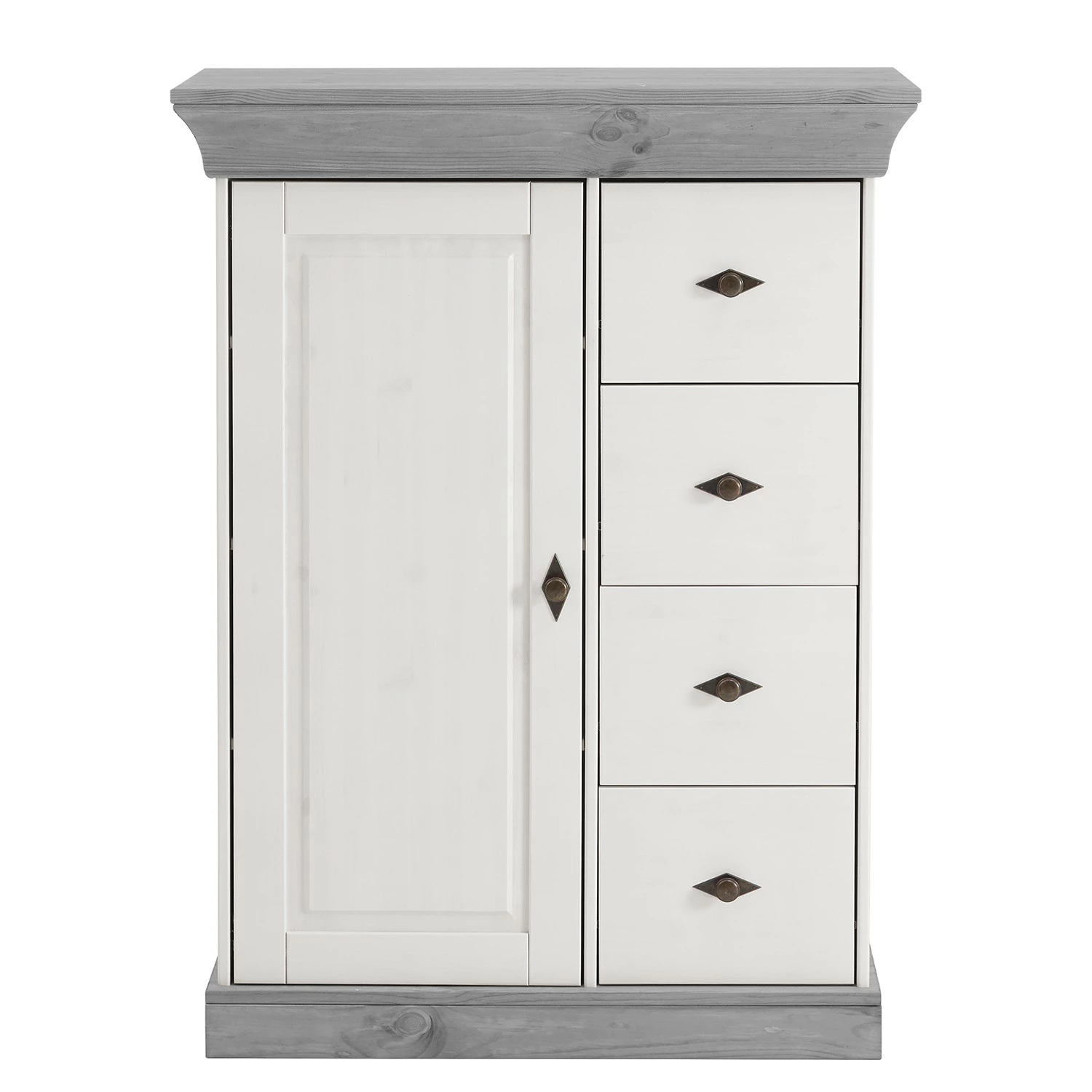 - Front & Korpus: Massivholz Kiefer, lackiert