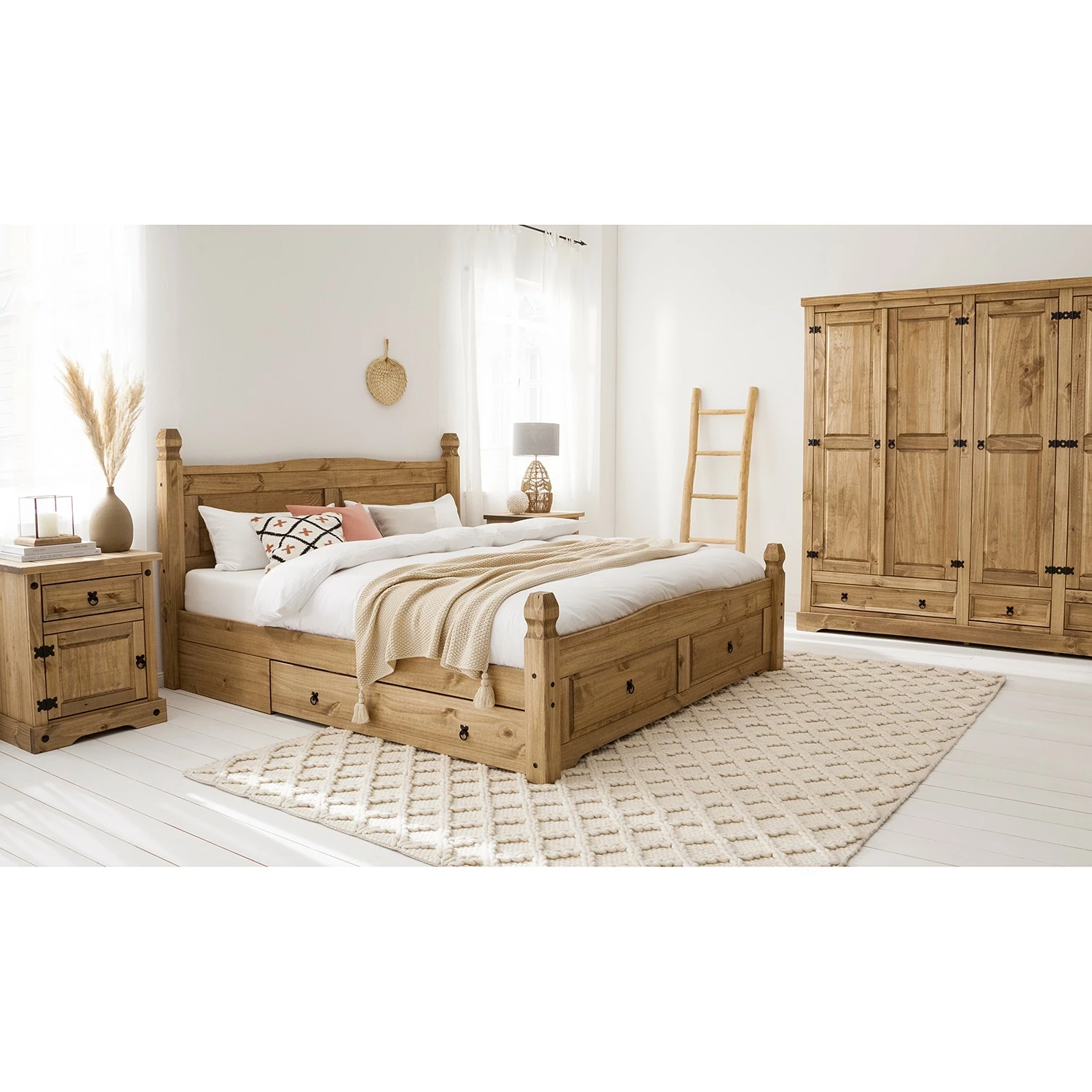 I love the rustic look of this bed. The solid pine is very sturdy, and the natural finish is beautiful. It’s perfect for our bedroom.