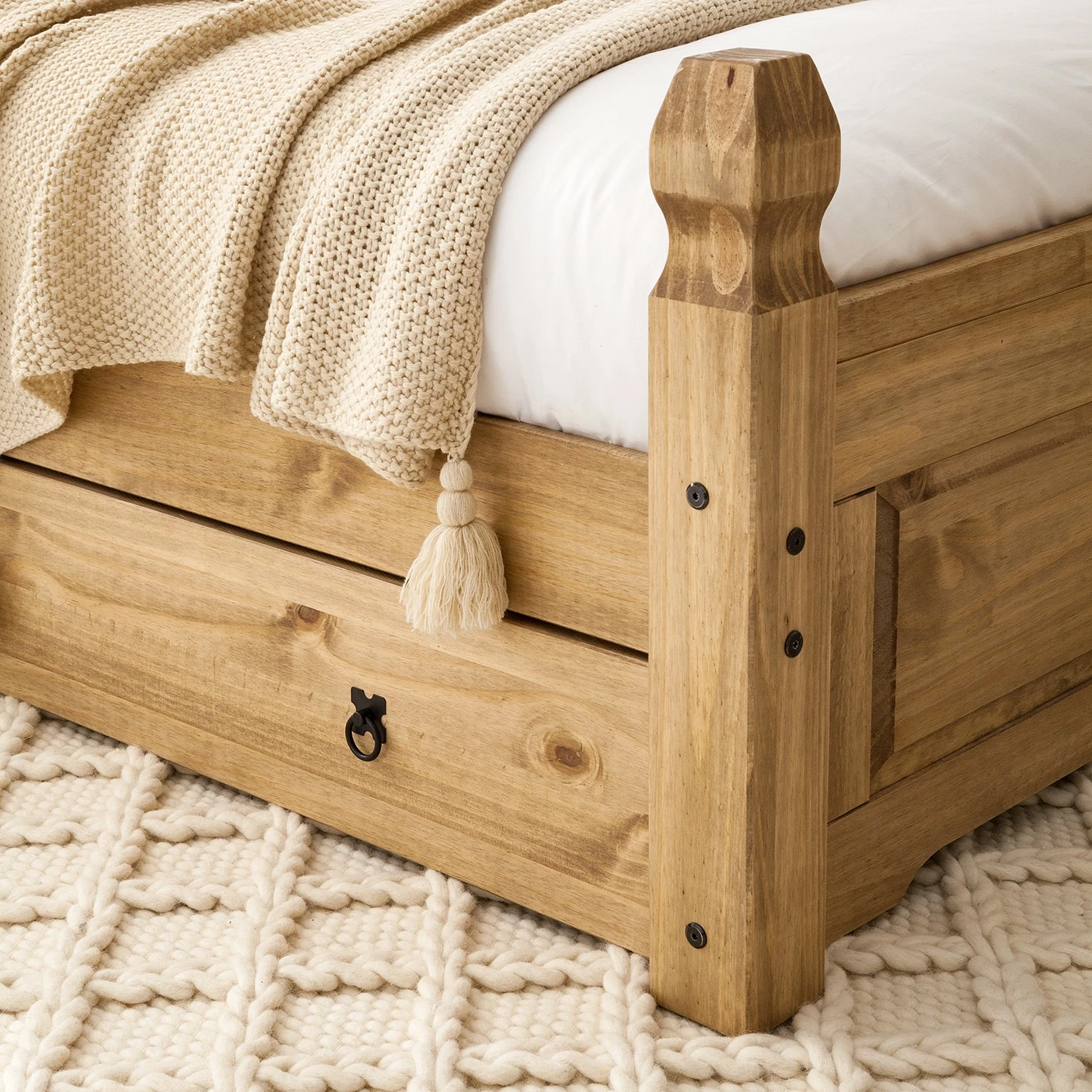 I’m really impressed with the quality of this bed. The solid pine is very sturdy, and the natural finish looks great. It’s a perfect addition to our bedroom.