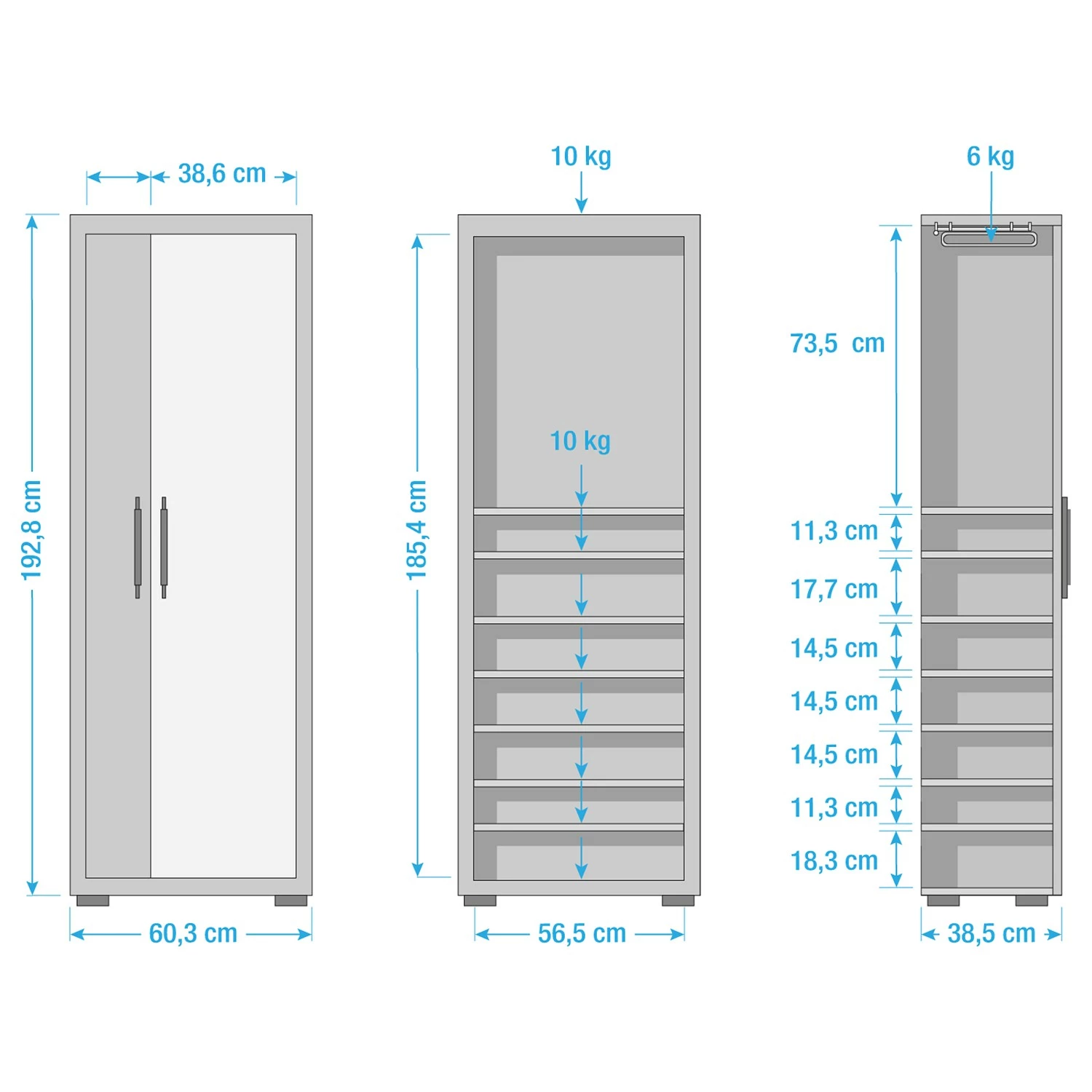 - Front & Korpus: Spanplatte, melaminbeschichtet