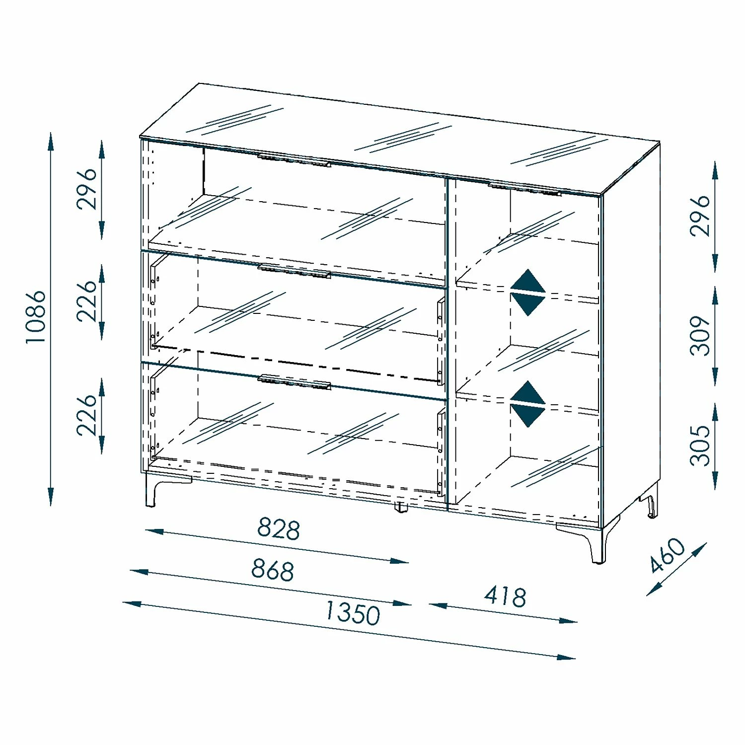 - Innenmaße Schubladen: BxHxT: je 82,9 x 22,7 x 33,4 cm