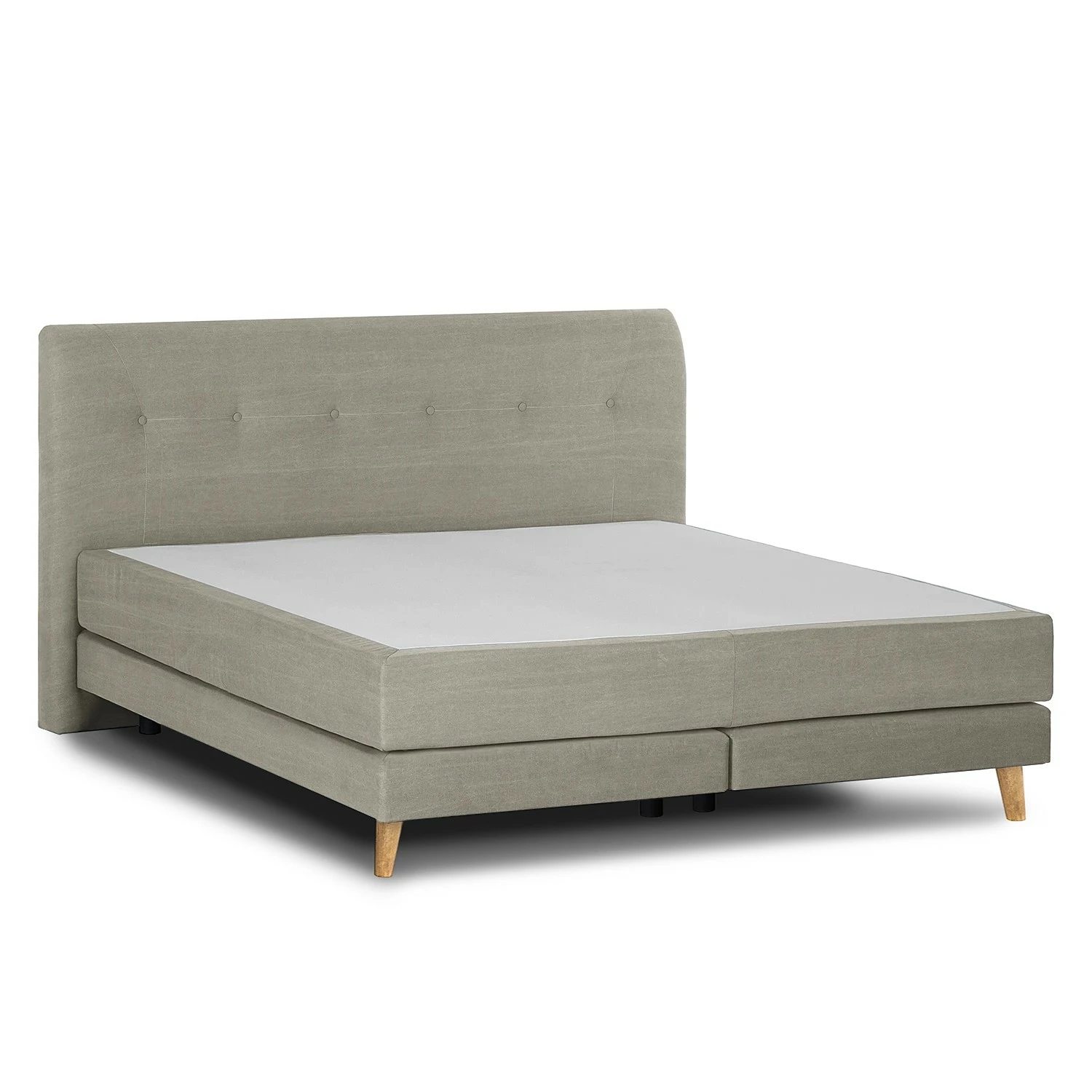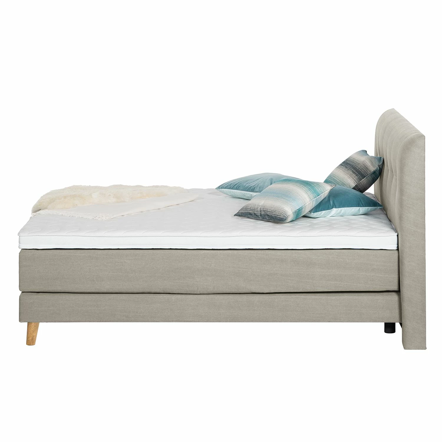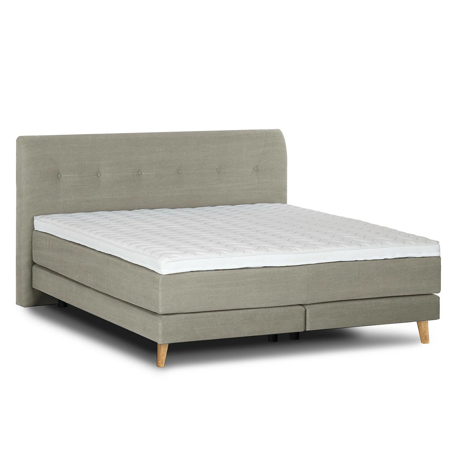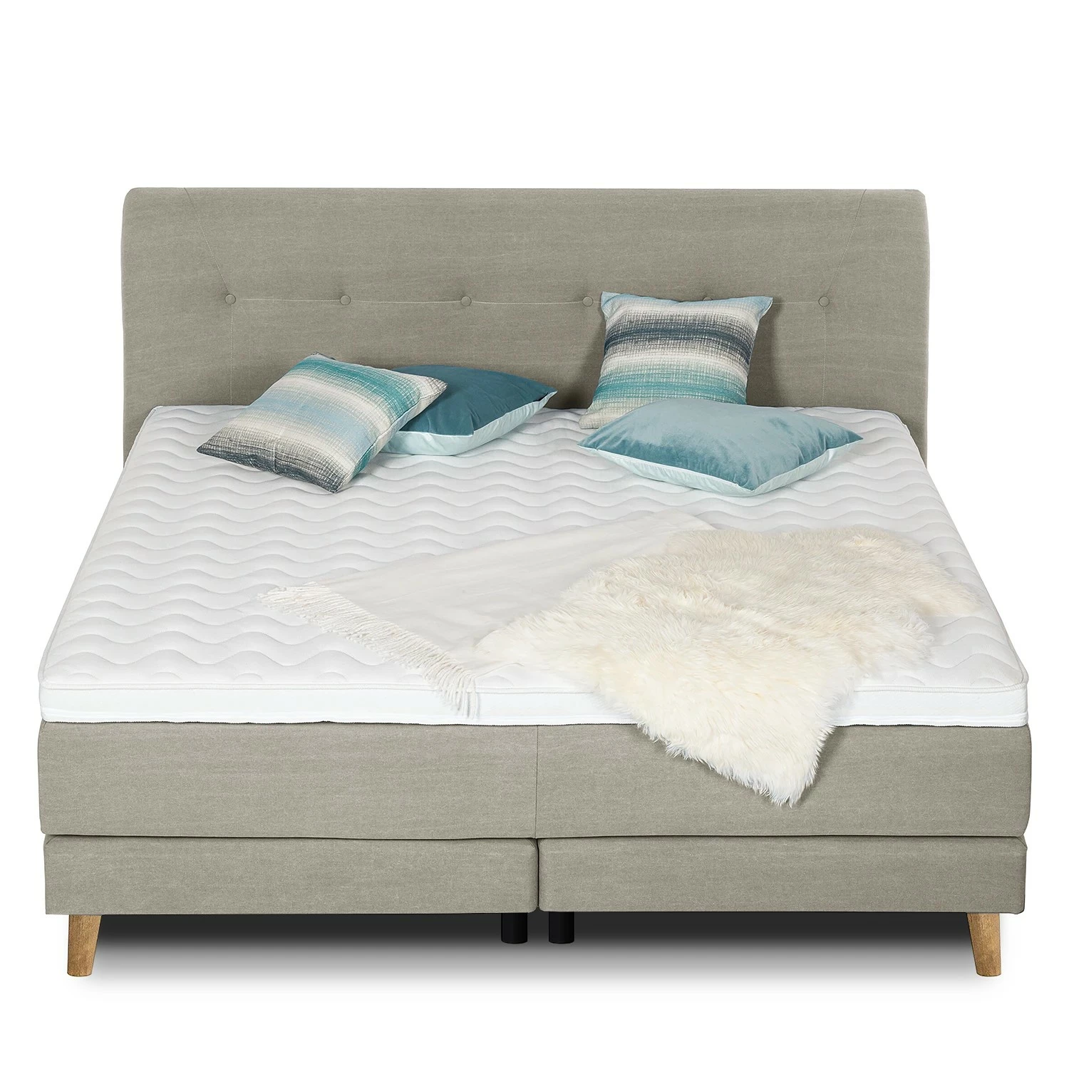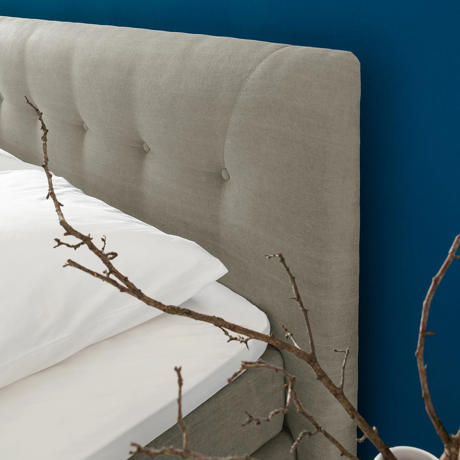 Boxspringbett Mälby bietet den unvergleichlichen Boxspringbett-Schlafkomfort und schafft es auch noch, das mit attraktivem Skandi-Chic zu verbinden. Die untere Federbox steht auf hübschen Füßen aus Massivholz, was dem Bett eine leichte Erscheinung verleiht. Dazu sind auf dem gepolsterten Kopfbrett hübsche Ziernähte und eine abgesetzte Knopfheftung eingearbeitet. Dank des Zusammenspiels aus zwei Matratzen mit Federkernen und dem weichen Visco-Schaumtopper bietet das Bett einfach traumhaften Liegekomfort.