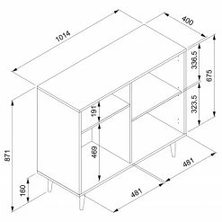 - Front & Korpus: MDF (Mitteldichte Holzfaserplatte), beschichtet
