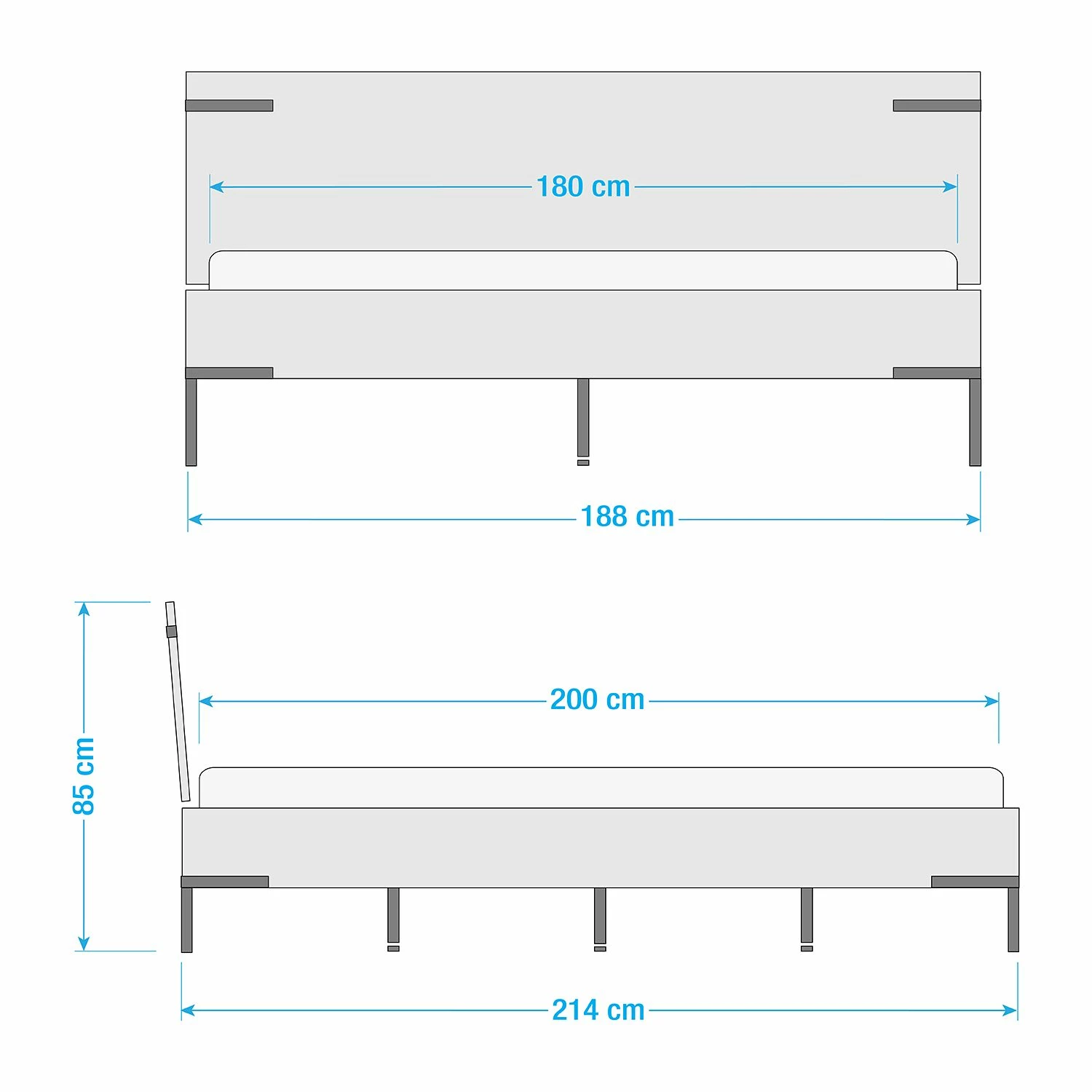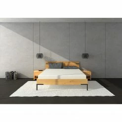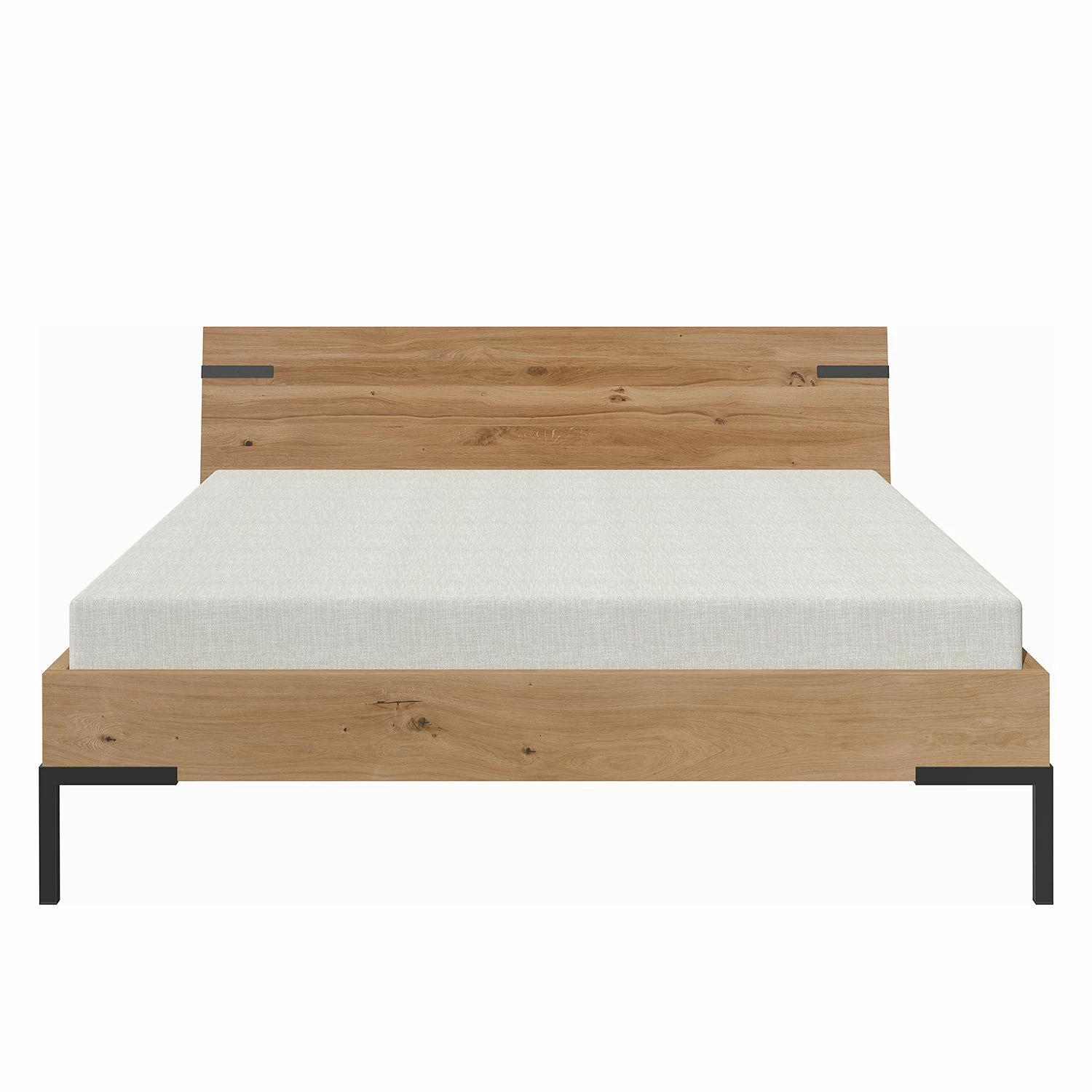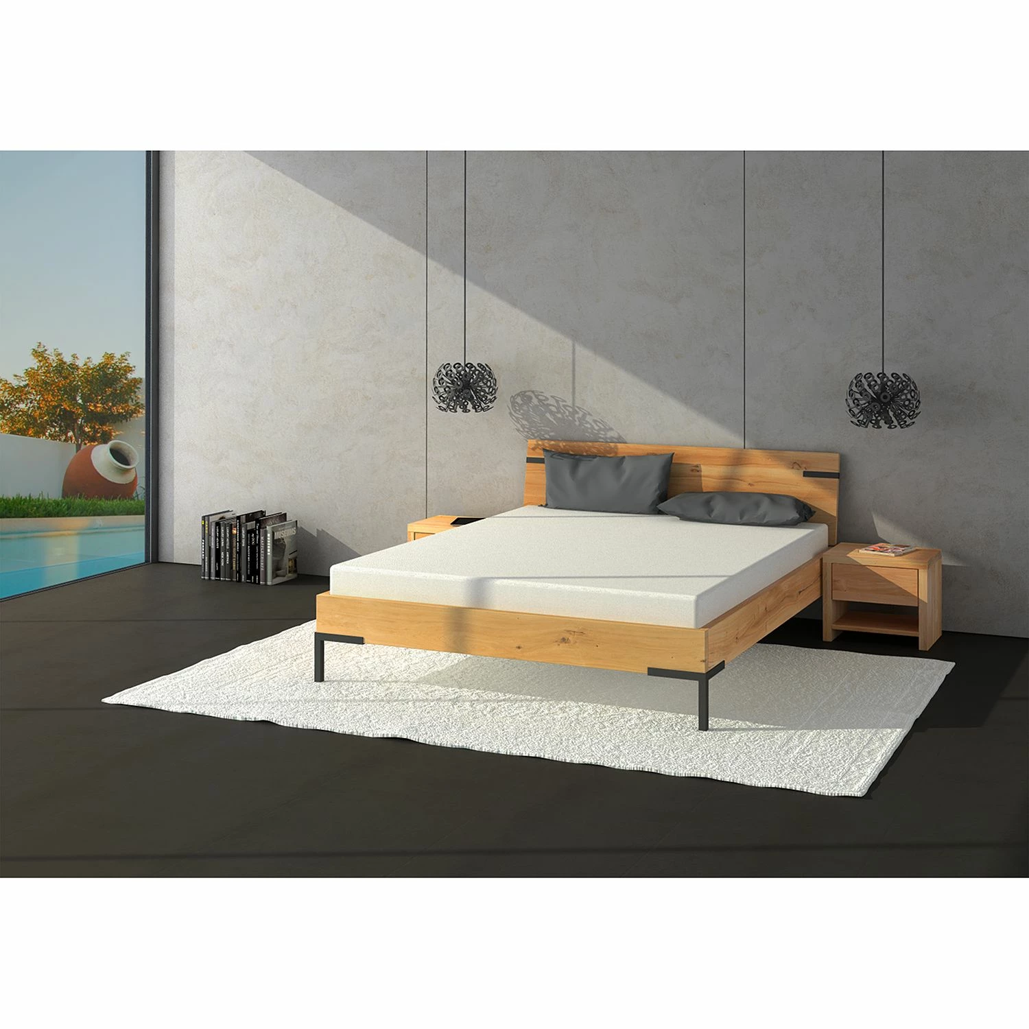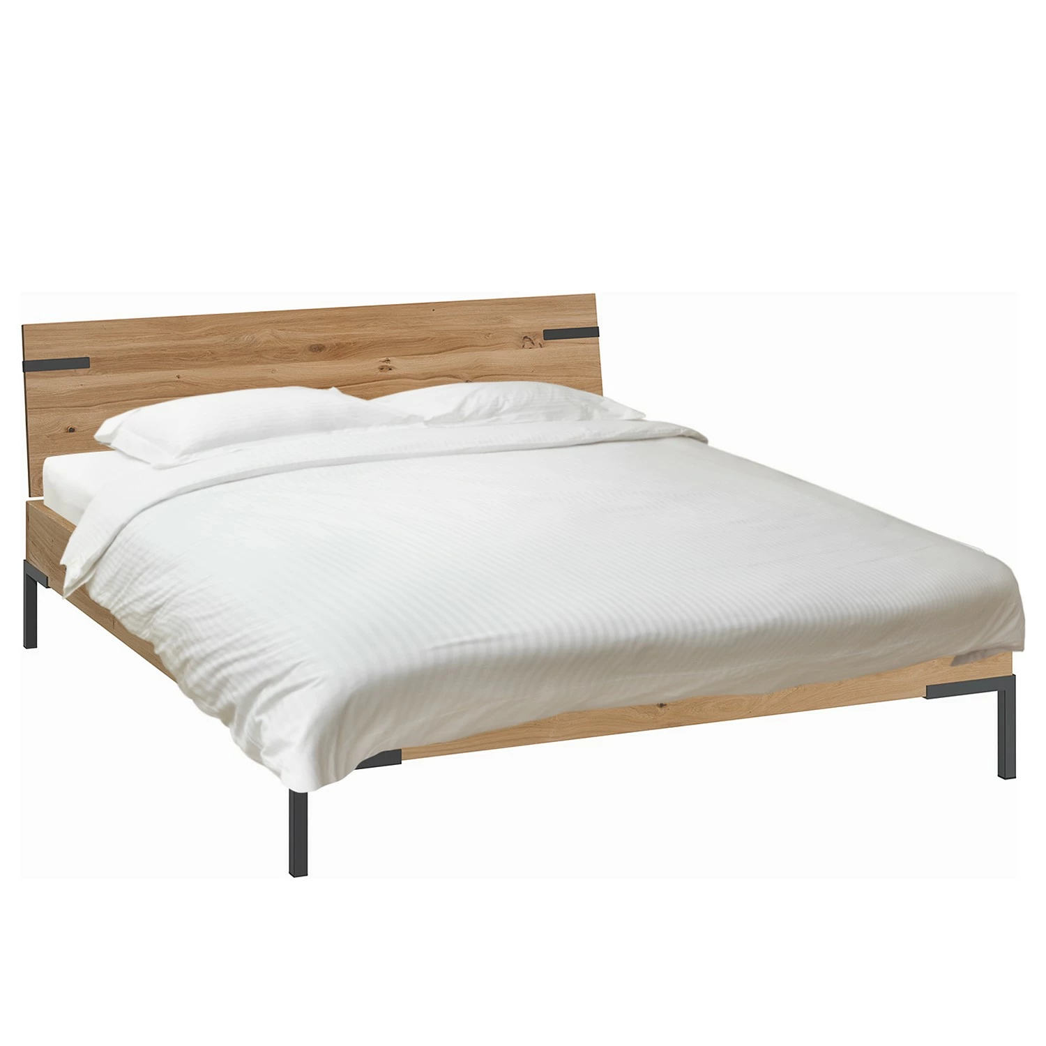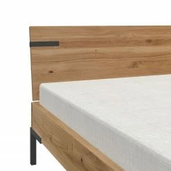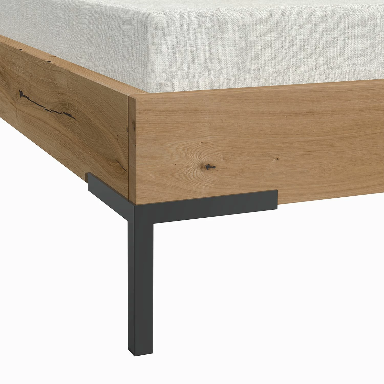 - Kopfteil: Wildeiche massiv, geölt mit Zierwinkel Metall, schwarz