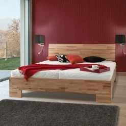 Für Paare oder Einzelpersonen, die sich extra viel Platz wünschen, ist dieses braune Bett perfekt geeignet. Gute Voraussetzungen für einen erholsamen Schlaf zu zweit sind dank 140 x 200 cm Liegefläche gegeben. Das ausdrucksstarke Kernbuchenholz des Bettgestells verleiht dem Raum Charakter.