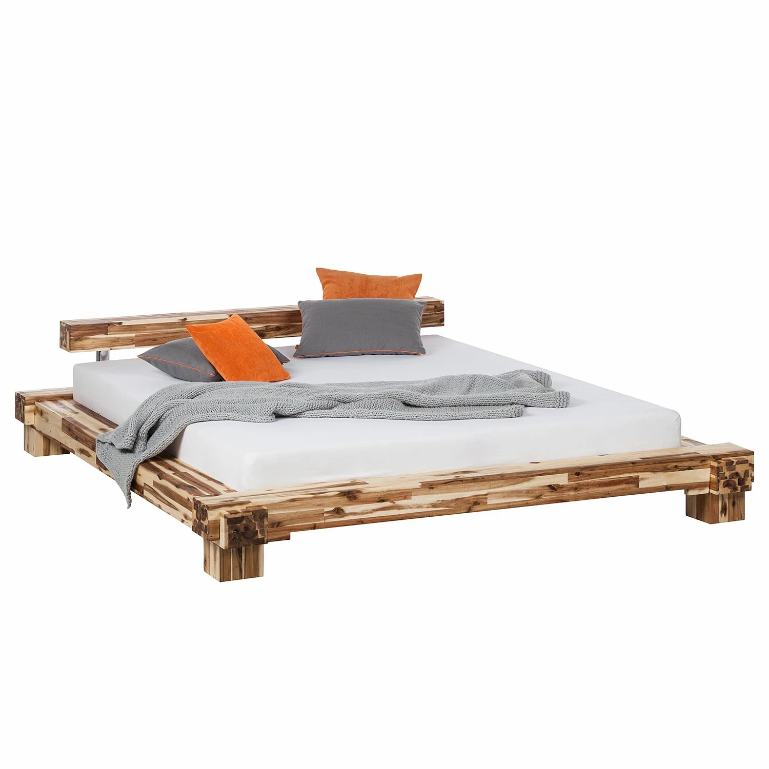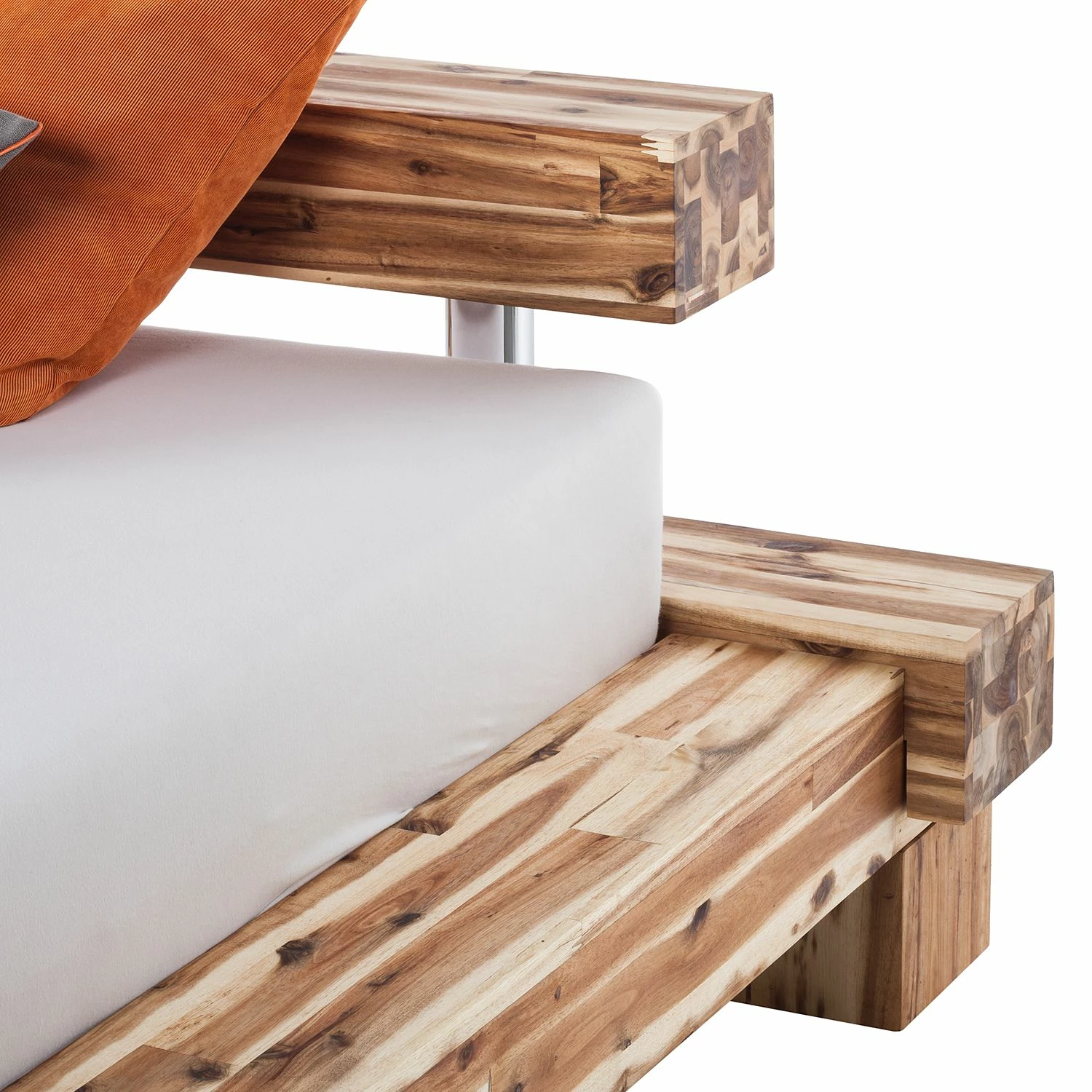 Das Massivholzbett Cali von Neue Modular besteht aus massivem Akazienholz, das eine schöne, ausdrucksstarke Maserung aufweist. Die Holzmaserung ist von Gestell zu Gestell verschieden, sodass jedes Produkt ein echtes Unikat aus der Natur darstellt. Die Oberflächen sind zudem gewachst und dadurch sehr robust und pflegeleicht. Das Massivholzbett Cali von Neue Modular ist mit Kopfteil insgesamt 56 cm hoch, 240 cm lang und 200 cm breit. Zum Lieferumfang gehört übrigens nur das Gestell. Lattenrost und Matratze kannst Du daher ganz individuell nach Deinen Bedürfnissen aussuchen und kaufen, zum Beispiel ebenfalls hier bei home24.