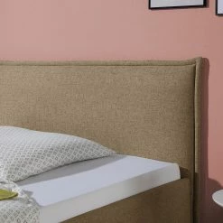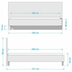 - Weitere Qualitätsmerkmale: Bettgestell mit Kopfteil (ca. 6 cm stark aufgepolstertet mit umlaufender Biese). Liegehöhe durch Metallauflagewinkel 4-fach verstellbar.
