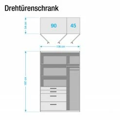 - Lieferumfang: Drehtürenschrank inkl. Innenausstattung und ohne Dekoration