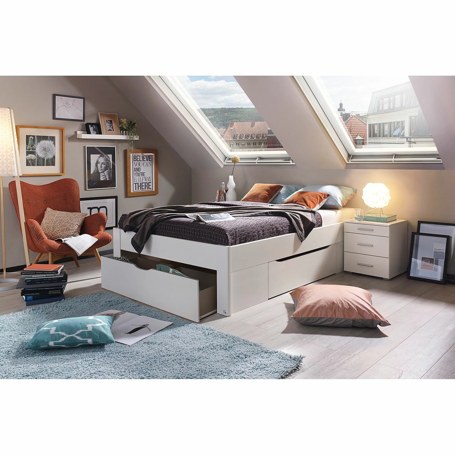 - Lieferumfang: Bett mit 3 Schubkästen ohne Lattenrost
