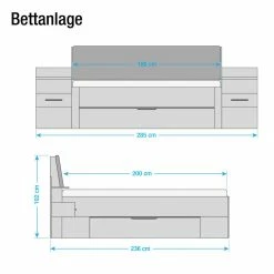 - Bettanlage: bestehend aus Bett, 2 Nachtkommoden & 3 Bettkästen