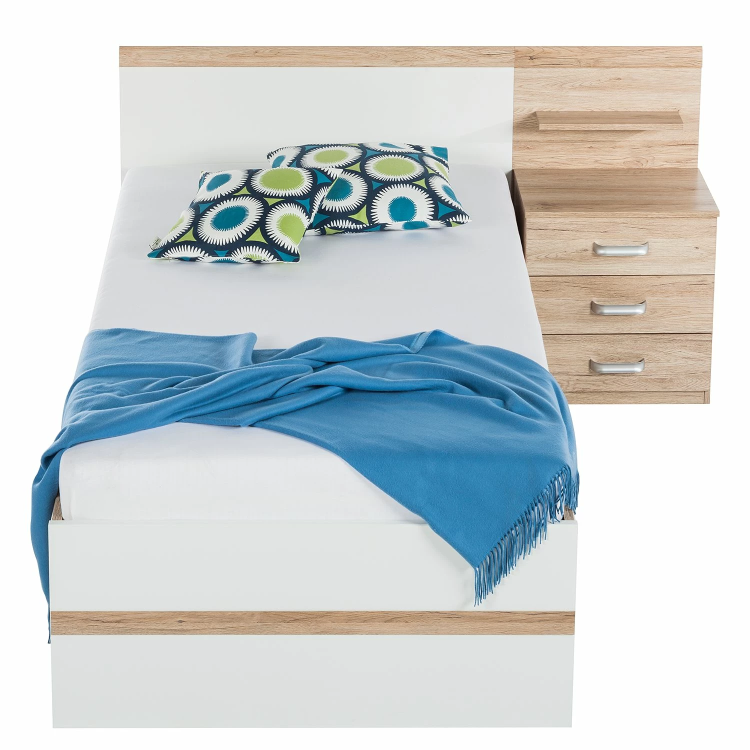 - Lieferumfang: 2-teilige Bettanlage ohne Lattenrost, Matratze & Dekoration