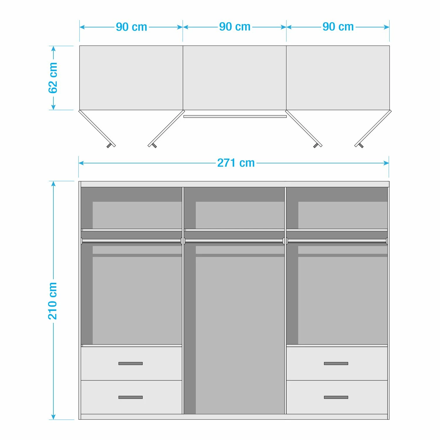 - Weitere Maße: Inneneinteilung: 90/90/90 cm