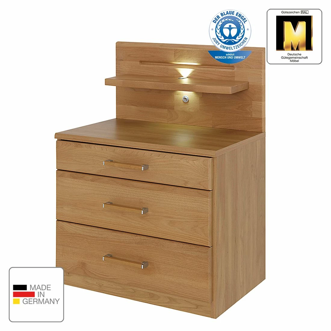 - Front: Massivholz Erle, lackiert