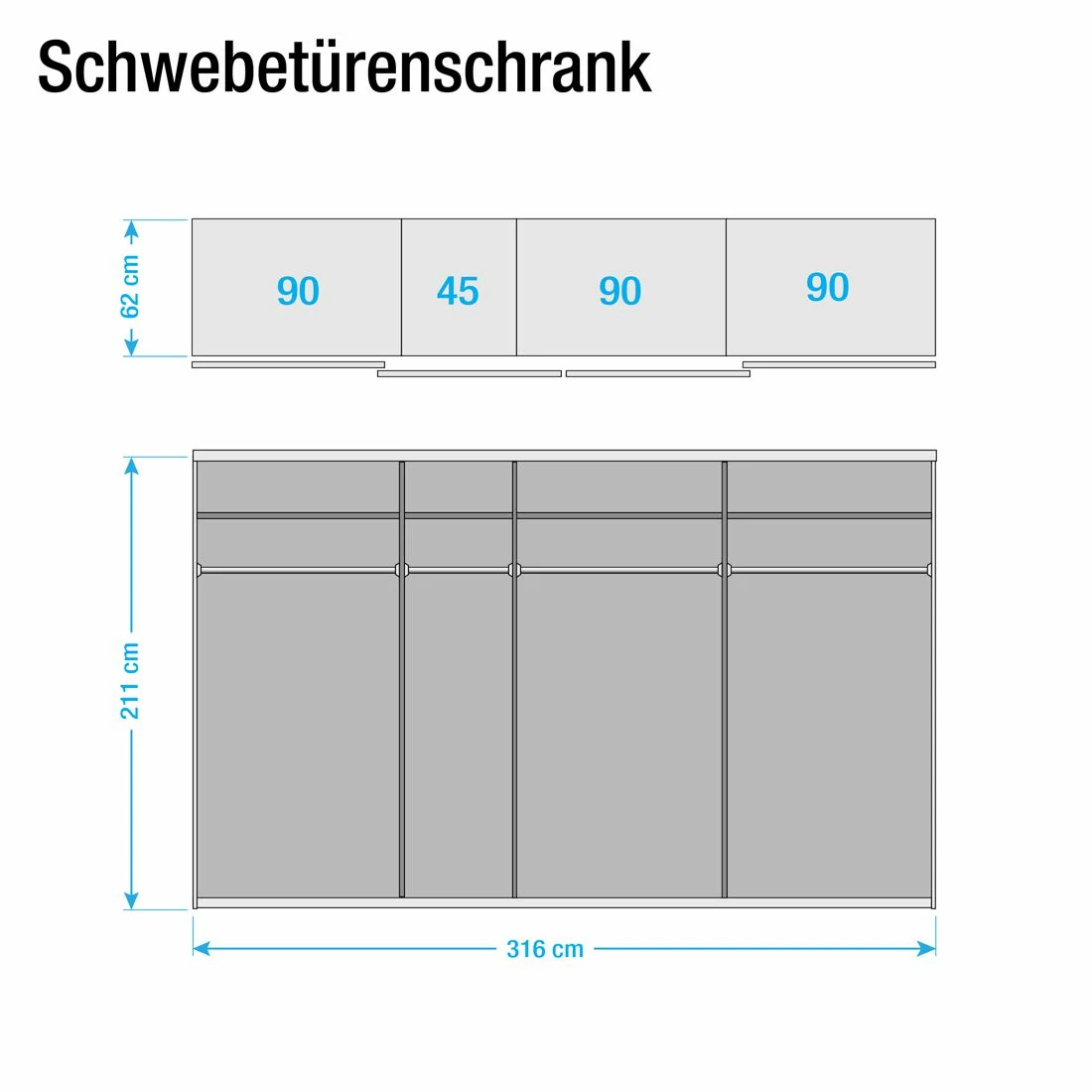 - Lieferumfang: Schwebetürenschrank inkl. Innenausstattung & ohne Dekoration
