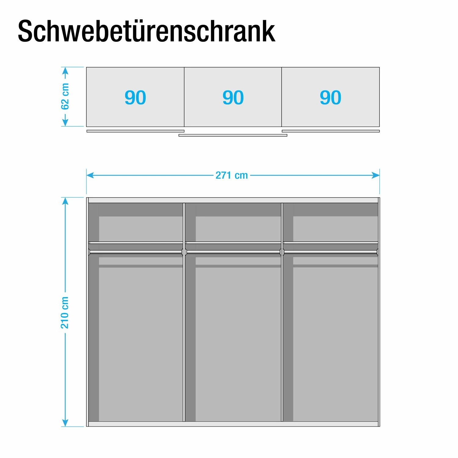 - Lieferumfang: Schwebetürenschrank ohne Dekoration