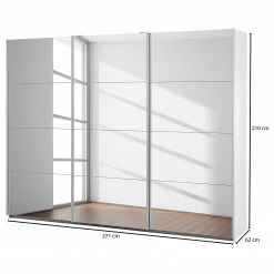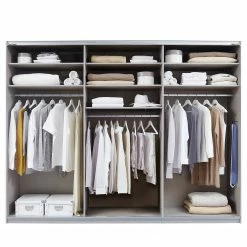 - Lieferumfang: Schwebetürenschrank inkl. 7 Fachböden, 3 Kleiderstangen, 1 Hakenleiste und Türdämpfung