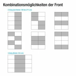 - Höhe 210 cm: Je 1 Fachboden & 1 Kleiderstange pro Schrankelement