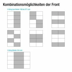 - Höhe 230 cm: Je 2 Fachböden & 1 Kleiderstange pro Schrankelement