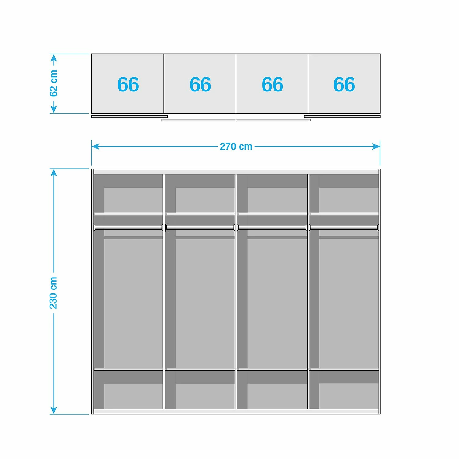 - Inneneinteilung: 66/66/66/66 cm