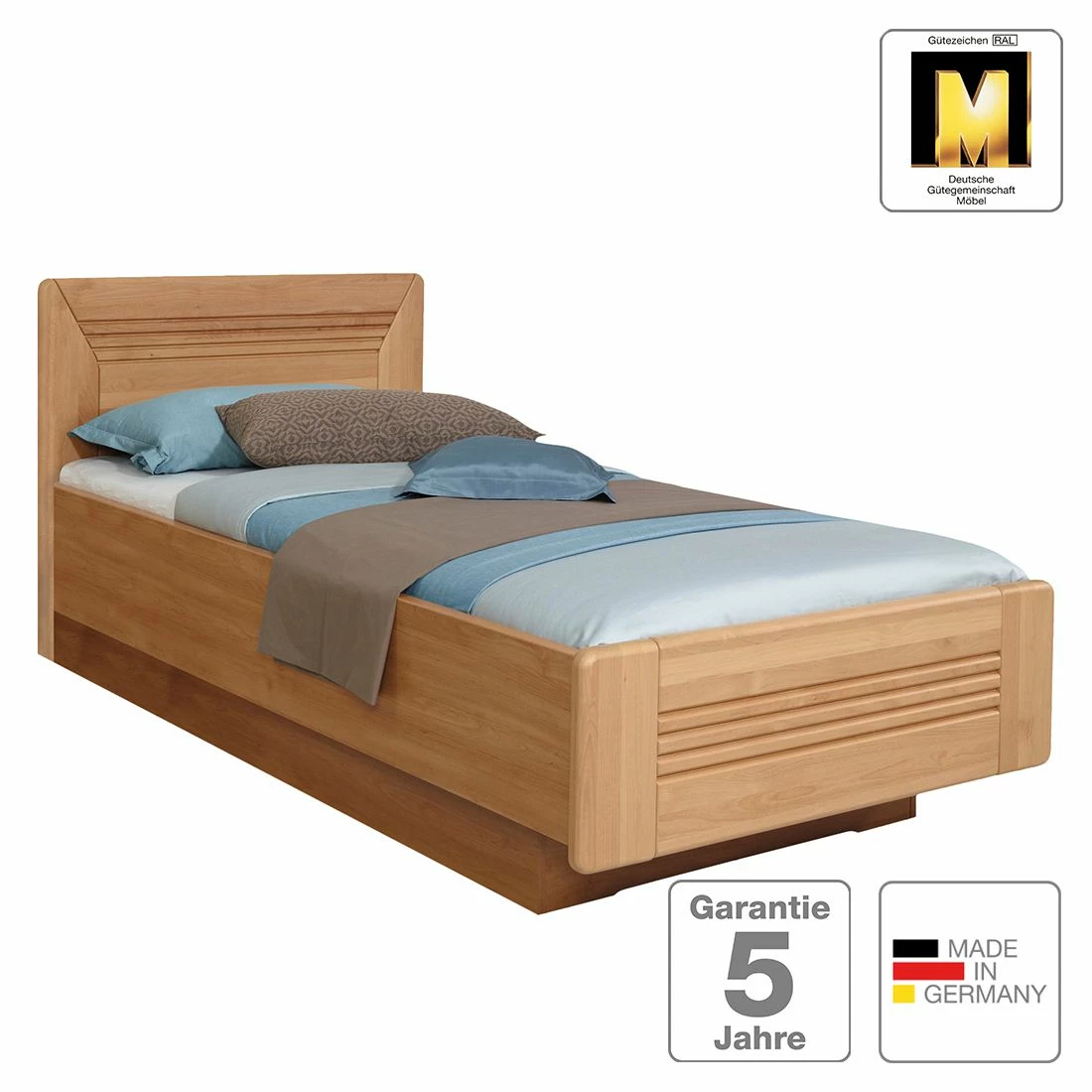 - Kopf- & Fußteil: Massivholz Erle, lackiert