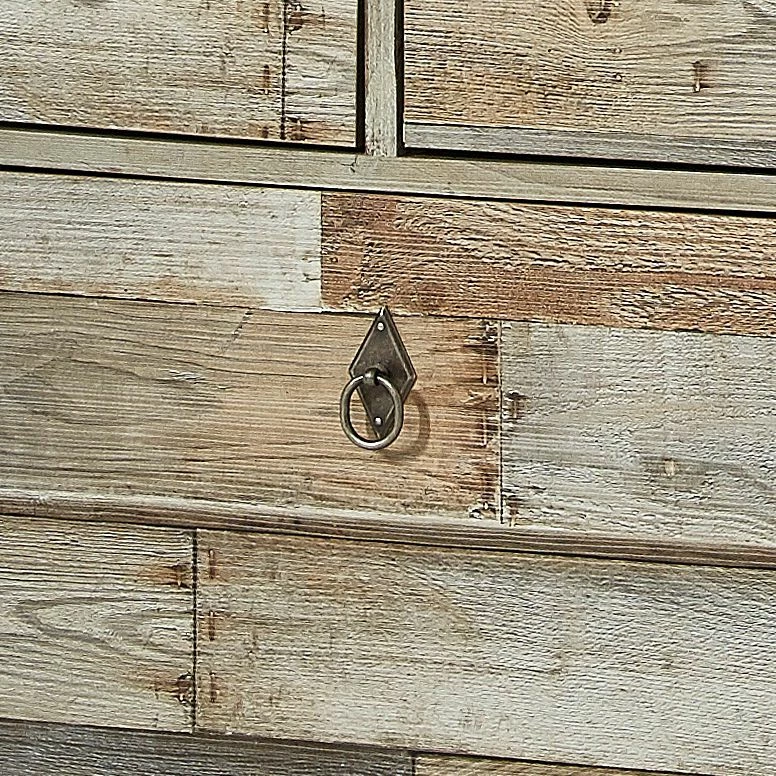 - 1 Holzklapptür, 5 Schubladen & 2 offene Fächer