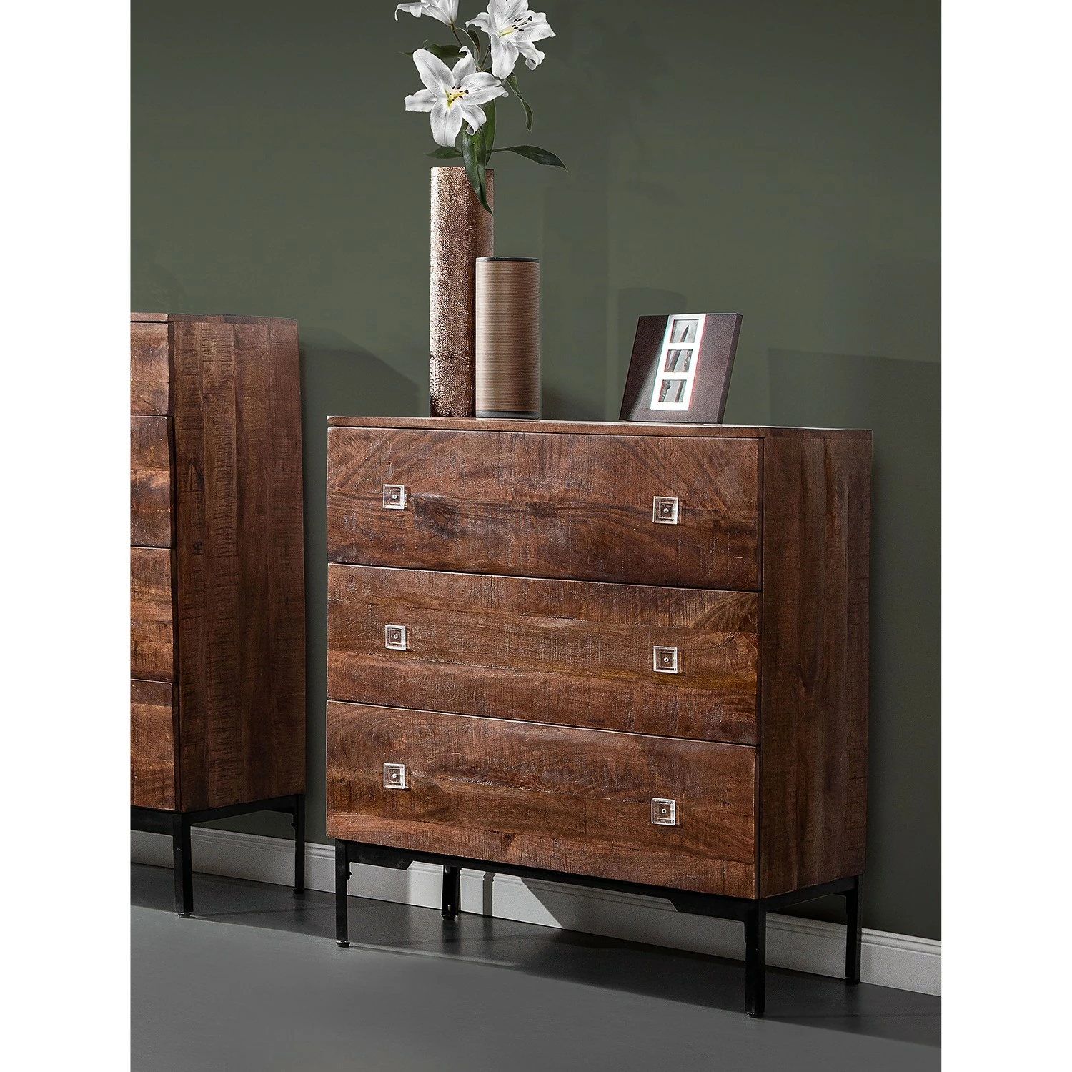 - Front & Korpus: Massivholz Mango, gebeizt & lackiert