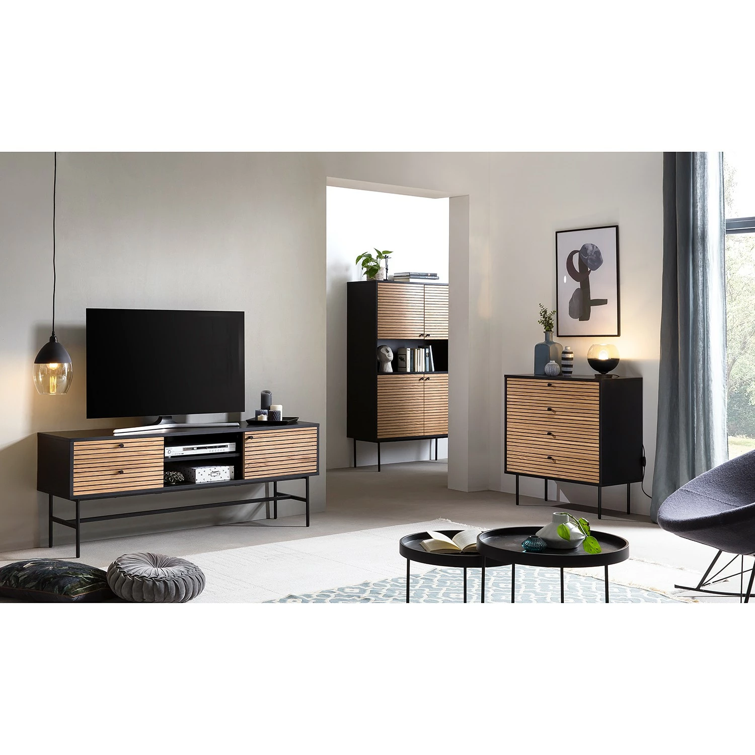 - Korpus: MDF (Mitteldichte Holzfaserplatte), lackiert