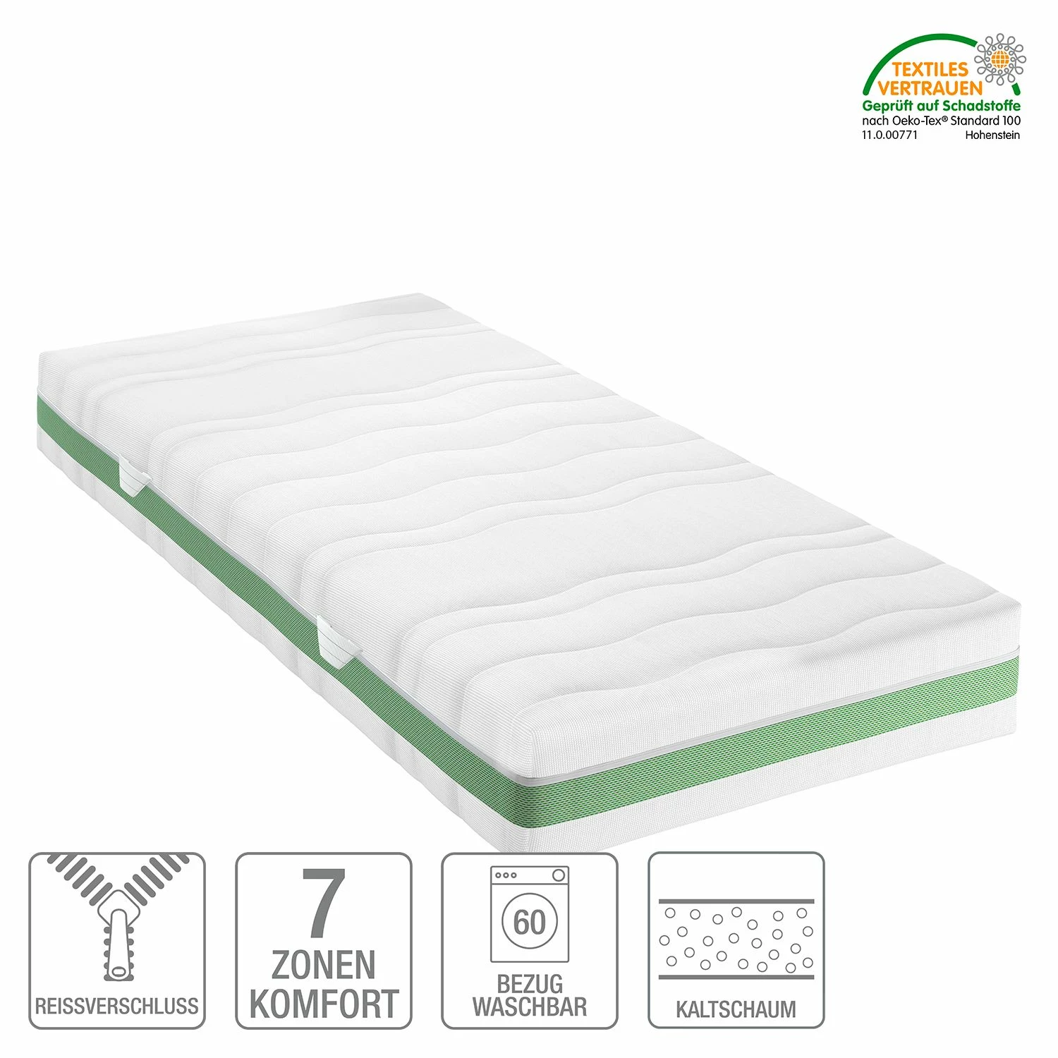 - Lieferumfang: 7-Zonen Kaltschaummatratze ohne Dekoration
