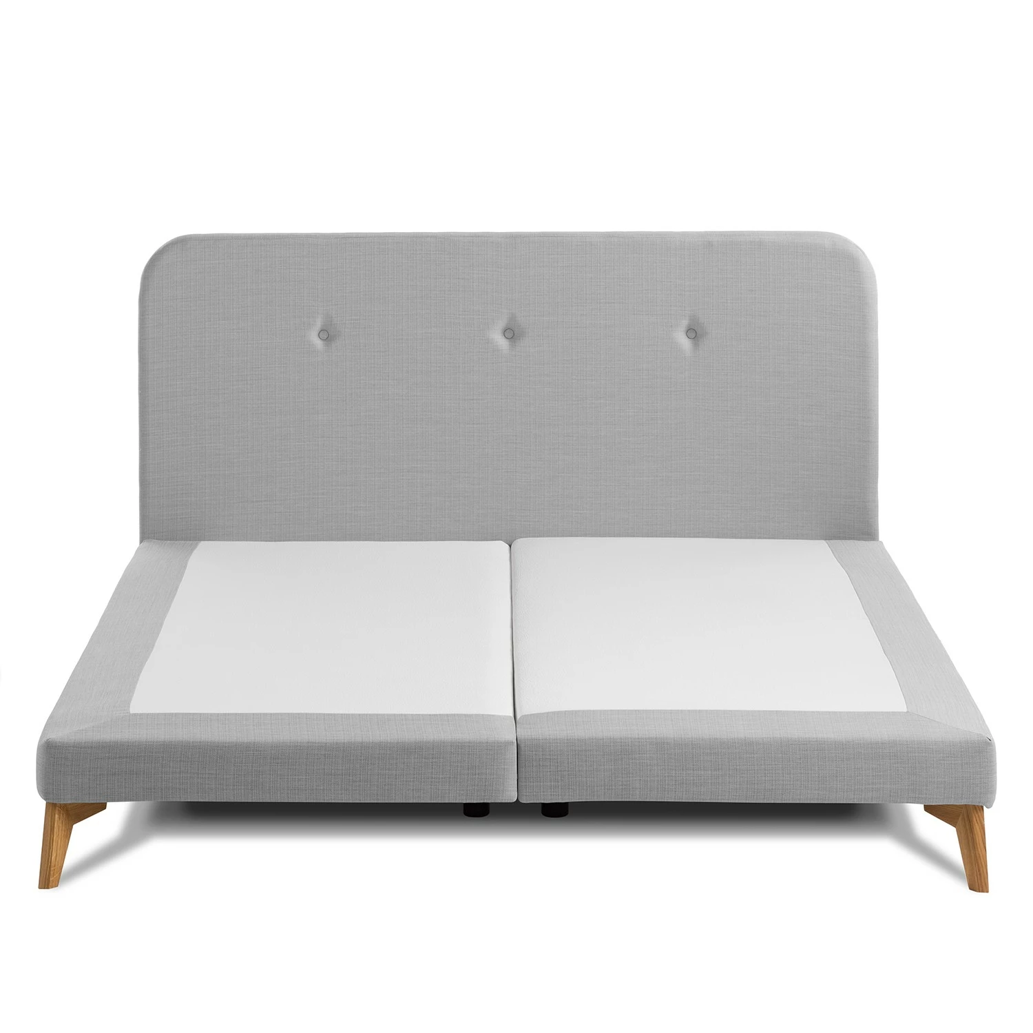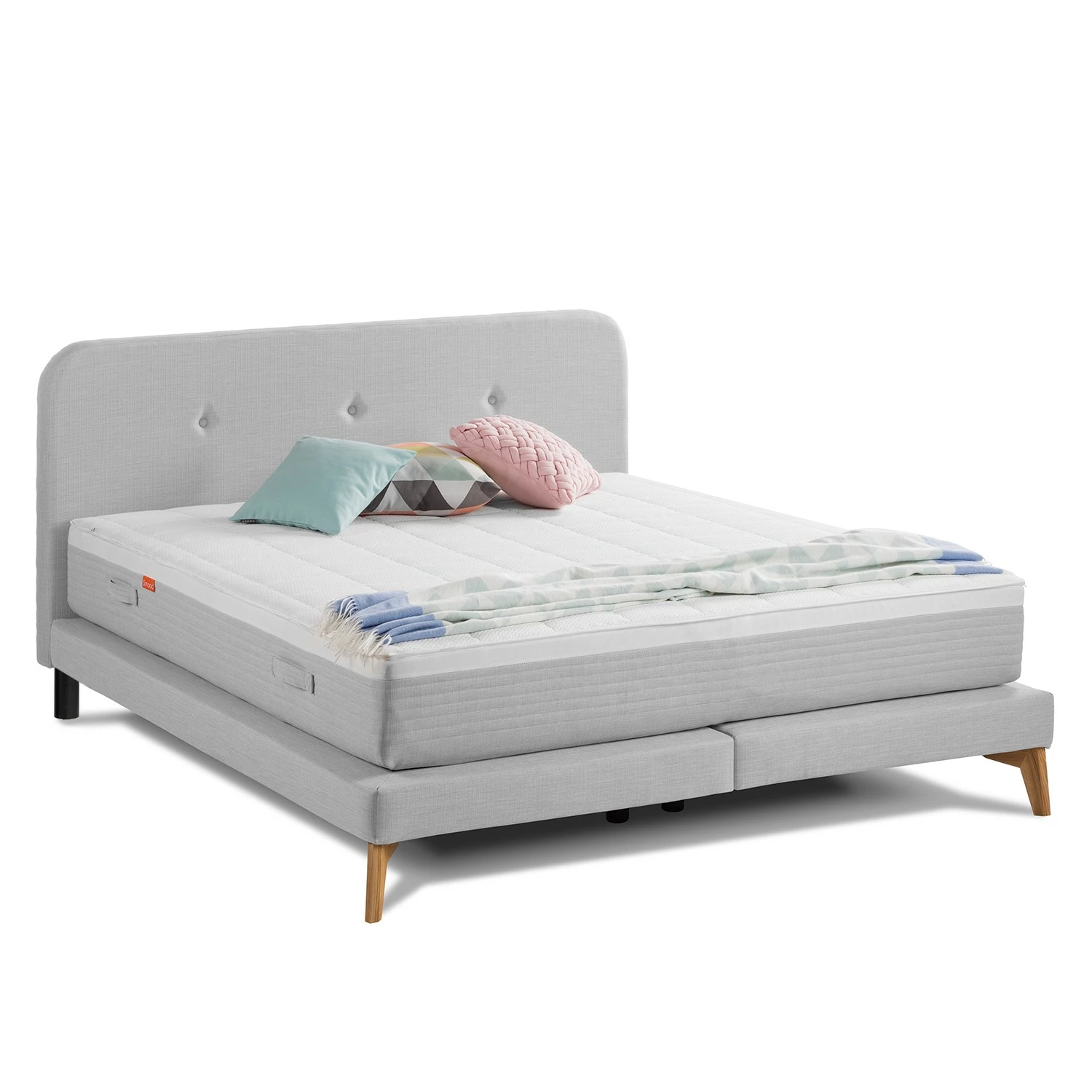Das Smoodspring-Bett vereint den Komfort eines Boxspringbetts mit anmutigem Design. Zur Auswahl stehen zwei Kopfteil-Varianten: ein geradliniges modernes und ein abgerundetes mit Knöpfen, das sich sehr gut in ein Skandi-Ambiente einfügt. Das gepolsterte Kopfende macht das Bett zu einer Wohlfühloase und sorgt als bequeme Rückenlehne für gemütliche Lesestunden. Weitere besondere Designmerkmale sind die eleganten Holzfüße und der etwa 5 cm überstehende Rand der Bonellfederkern-Box. Das Smoodspring Bett ist ideal mit der Smood Premium Komfortmatratze, der Smood Boxspring Wendematratze oder auch den Modellen von Mazzy zu kombinieren – bei letzteren kann man sich je nach Präferenz eine größere oder geringere Höhe auswählen.