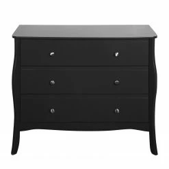 Die Möbel aus dem Hause Steens stehen für stilvolle Designideen und für Qualität. Bei der eleganten Kommode Baroque II von Steens sorgen klassische, schwungvolle Formen für den romantischen Charme. Schlicht gestaltete, runde Griffknöpfe unterstreichen den eleganten Charakter des Möbelstücks der Serie Baroque by Steens. Die in Schwarzbraun lackierte Kommode Baroque II ist mit drei Schubladen ausgerüstet. Kombiniert werden kann sie zum Beispiel mit anderem Möbeln mit klassischen Stilelementen. Aber auch als Kontrast zu Möbeln im puristischen Look kann die Kommode effektvoll in Szene gesetzt werden.