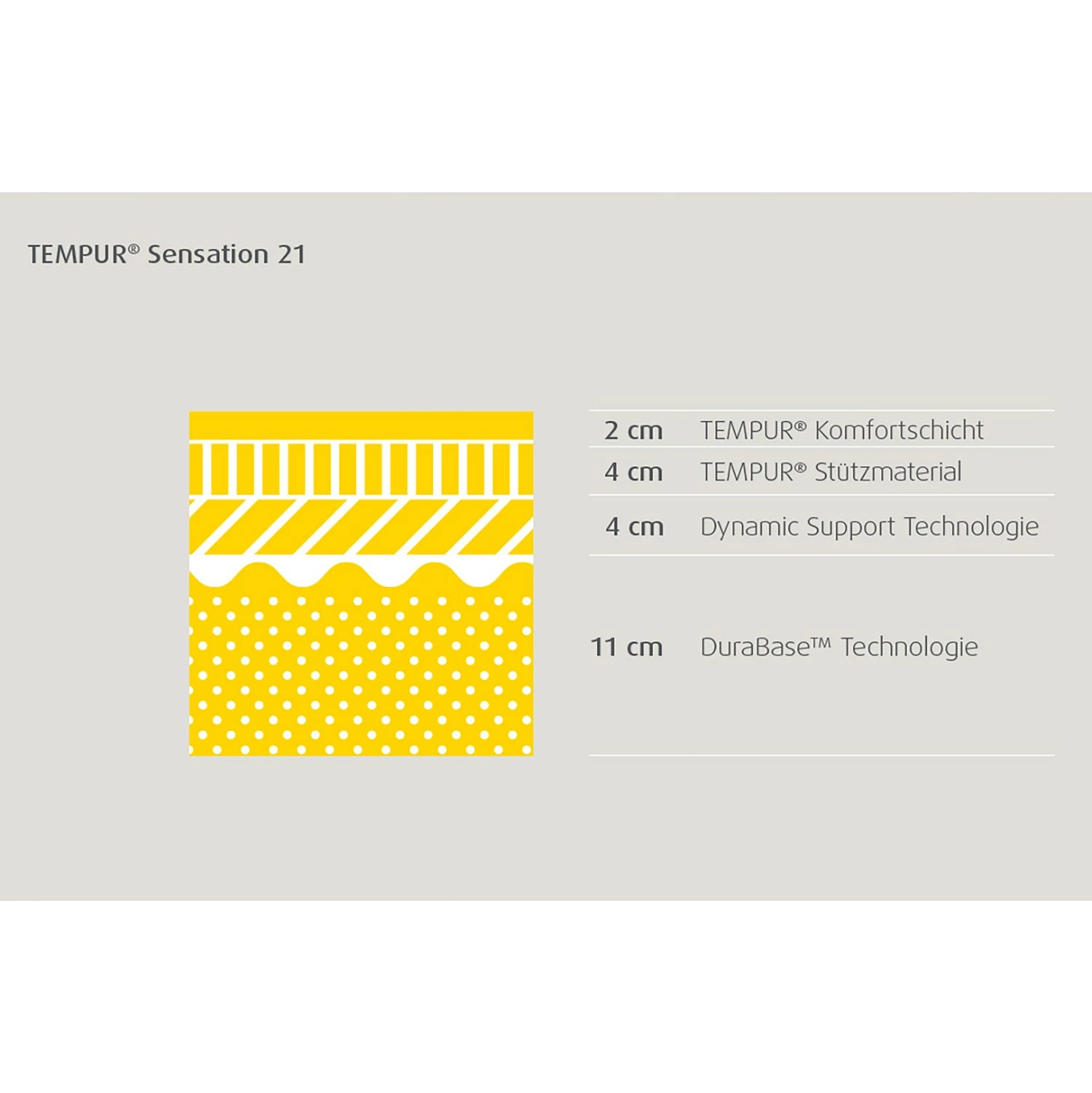 - Schicht 2: 4 cm TEMPUR® Dynamic Support-Technologie mit druckentlastende Eigenschaften