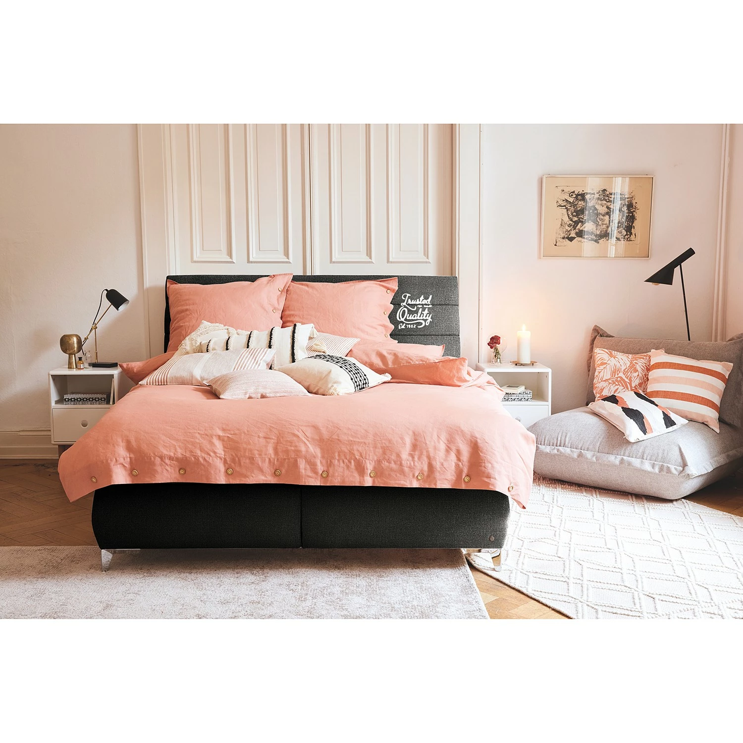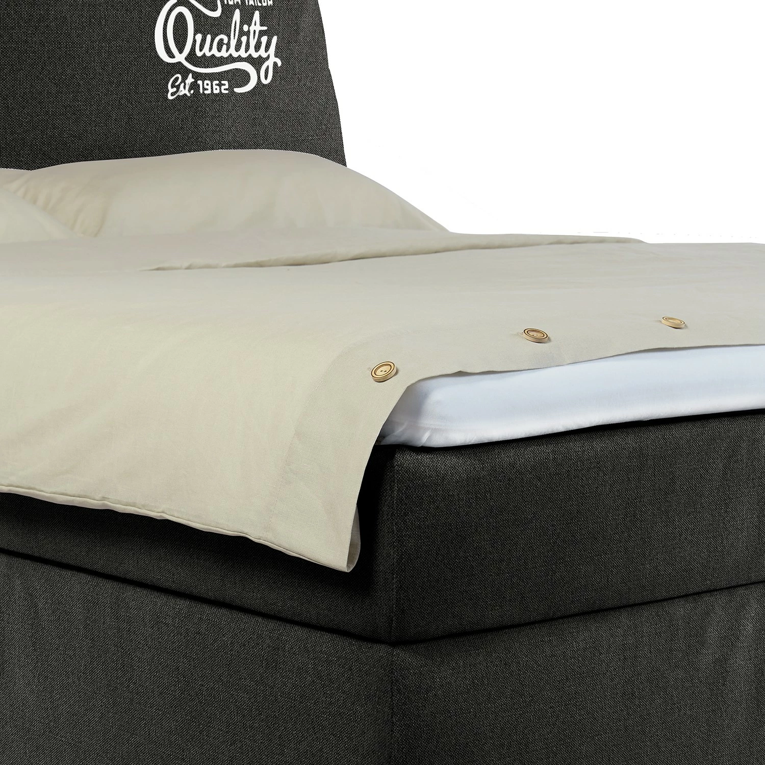 - Weitere Qualitätsmerkmale: Mit „Tom-Tailor-Button“ auf der rechten vorderen Bettseite