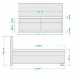 - Weitere Maße: Kopfteilhöhe: 119 cm