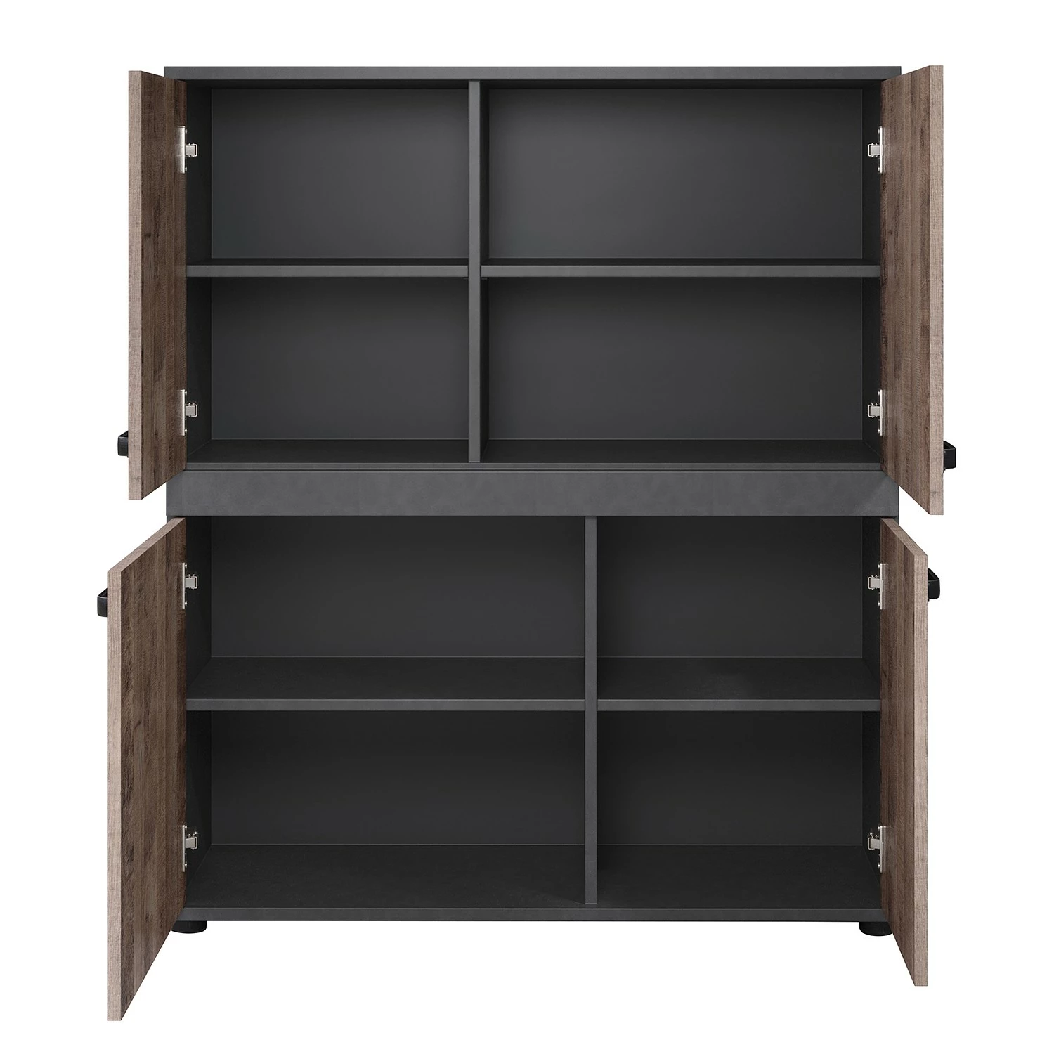 - Front: HDF (Hochdichte Holzfaserplatte), beschichtet
