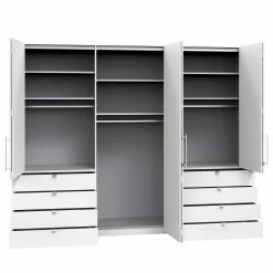 - Lieferumfang: Kleiderschrank, Innenausstattung pro Fach: 2 Einlegeböden und eine Kleiderstange