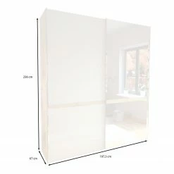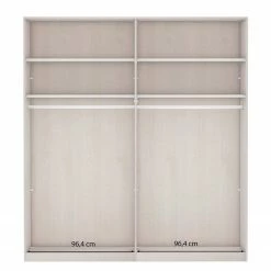 - Lieferumfang: Schwebetürenschrank inkl. 4 Einlegeböden und 2 Kleiderstangen, ohne Dekoration