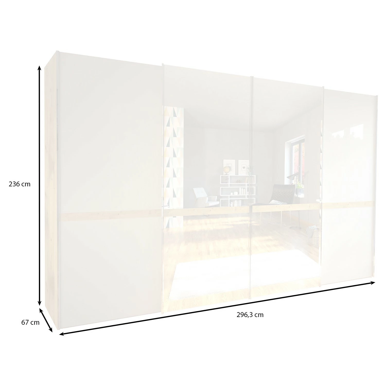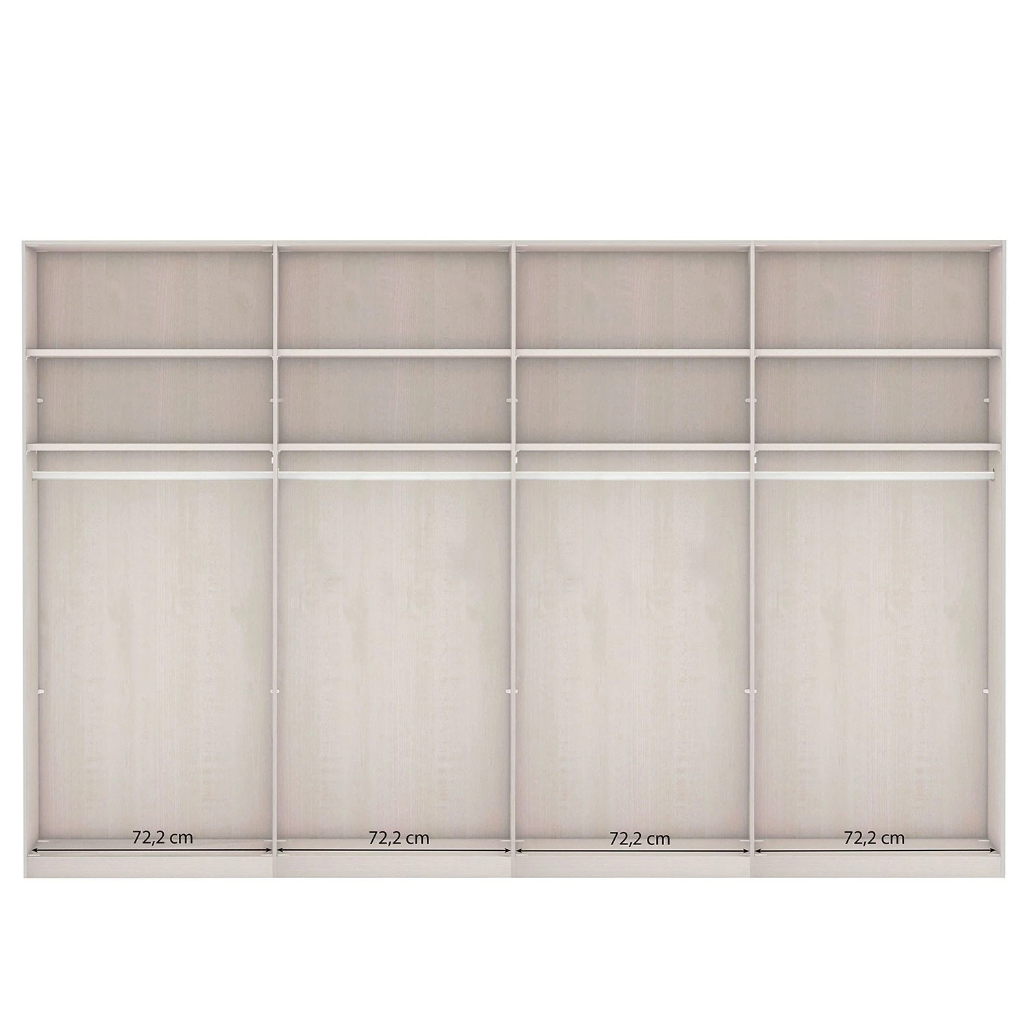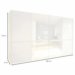 - Lieferumfang: Schwebetürenschrank inkl. 8 Einlegeböden und 4 Kleiderstangen, ohne Dekoration