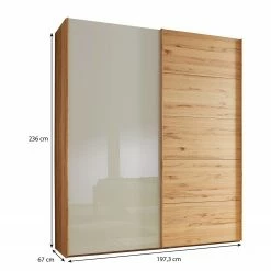 - rechte Schwebetür : Massivholz Astkernbuche; linke Schwebetür : Floatglas