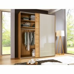 - linke Schwebetür : Massivholz Astkernbuche; rechte Schwebetür : Floatglas