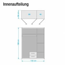 - Schrankbreite 135 cm: 1 Kleiderstange & 4 Einlegeböden
