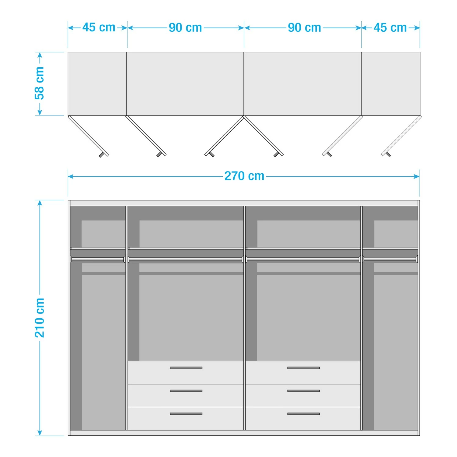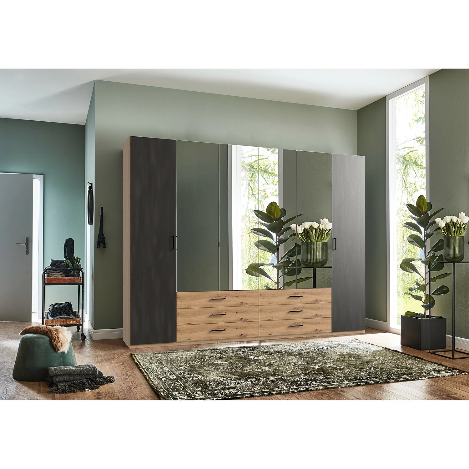 - Lieferumfang: Drehtürenschrank inkl. 6 Schubkästen, 4 Einlegeböden und 4 Kleiderstangen