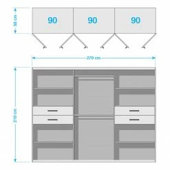- 2 Spiegeltüren, 2 Kleiderstangen