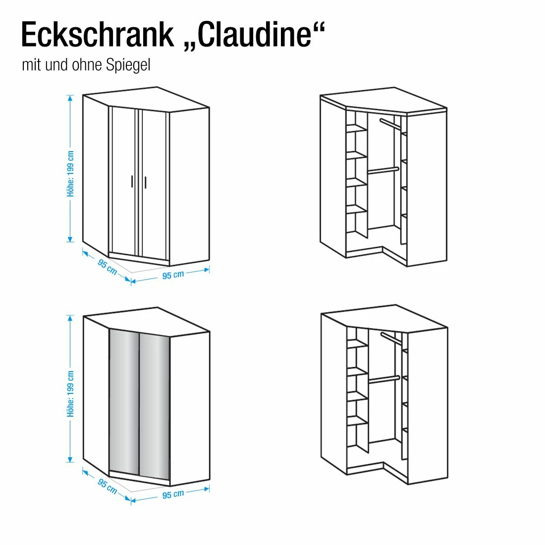 - Breite: 95 cm Höhe: 199 cm Tiefe Mitte: 86.20 cm Schrankseitentiefe: 30 cm Schenkelmaß: 95 x 95 cm