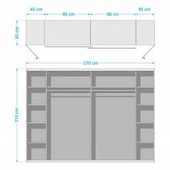 - Lieferumfang: Schwebetürenschrank mit Drehtürenelementen 10 Einlegeböden und 2 Kleiderstangen